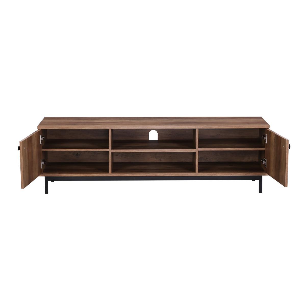 Dunelm Exclusive - Designed and Developed by Dunelm* Suitable for up to a 65" TV* Self assembly required* Two open shelves with cable access* Two spacious cupboards with cable access and fixed shelves* Adjustable hydraulic buffering hinged doors* Rustic pine effect finish**Dunelm Exclusive - Designed and Developed by Dunelm**Inspired by contemporary and simplistic styling the Fulton range is a perfect statement piece to any living space. Made from durable materials with a metal tube base and unique matt finish, this self-assembly range features a rustic pine-effect finish with complementing black handles. Crafted with two spacious cupboards, each equipped with fixed shelves and adjustable hinged doors, this wide TV stand offers plenty of useful storage space making it easy to keep your living room clutter free. The two wide open shelves also allow for easy access to any console or device with full cable access at the back. Care Instruction: Only clean using a damp cloth and mild detergent, do not use bleach or abrasive cleaners. From time to time check that there are no loose screws on this unit. dunelm. com/category/home-and-furniture/furniture/shop-by-collection/fulton-furniture-collection? f_attributes. product Descriptive Attributes. amazonaws. com/dunelm-prod/32946eff-1fed-437c-86ff-e98eac5e11c0_Fulton+Wide+TV+unit+Assembly+Instructions. pdf) to view the assembly instructions.