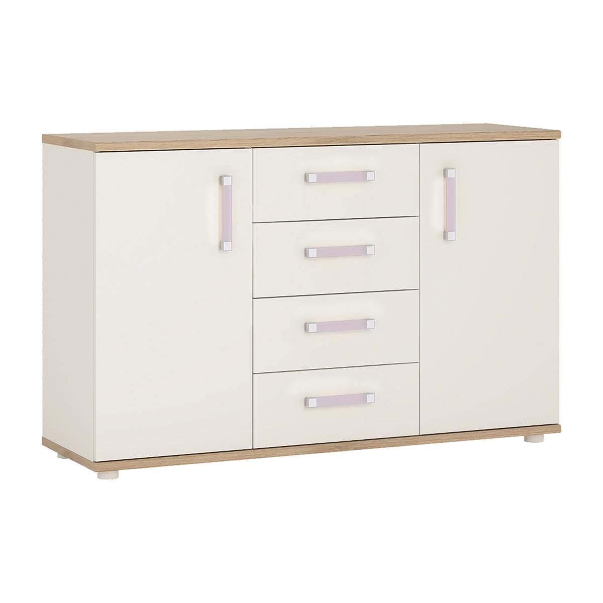 Incredibly stylish and practical, this gorgeous Fun Two Door Four Drawer Sideboard will be the perfect storage solution for all your treasured items. Beautifully fashioned from oak and white laminated finish, the neutral tones will seamlessly complement a whole array of home styling and interiors, be that in your bedroom, living room or conservatory. The sturdy, robust frame features two doored storage compartments with adjustable shelves to hide away everything from tea sets to bedding and paperwork, keeping clutter out of sight and your living space neat and tidy. In addition, there are four spacious drawers for important paper, electronics and your keys, while the sideboard surface top is ideal to display your favourite reads, seasonal blooms, decorative ornaments or your photo memories. A versatile yet elegant storage unit that will look wonderful wherever you place it, transforming your house into a sophisticated home you can be proud of.
