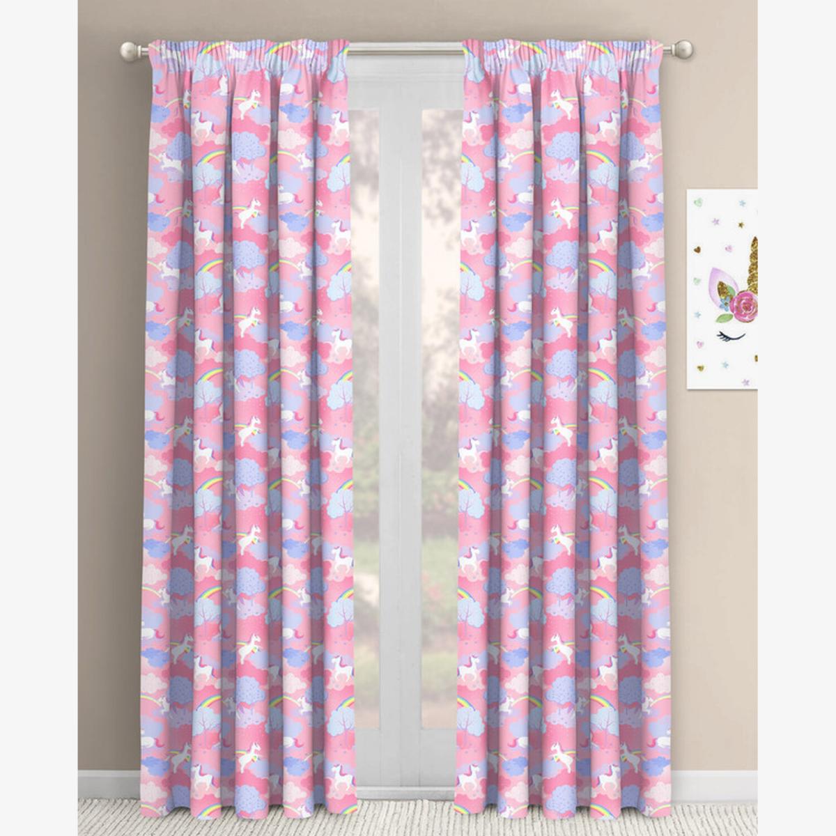 Fun Unicorn Rainbow Curtain Pair - Pink