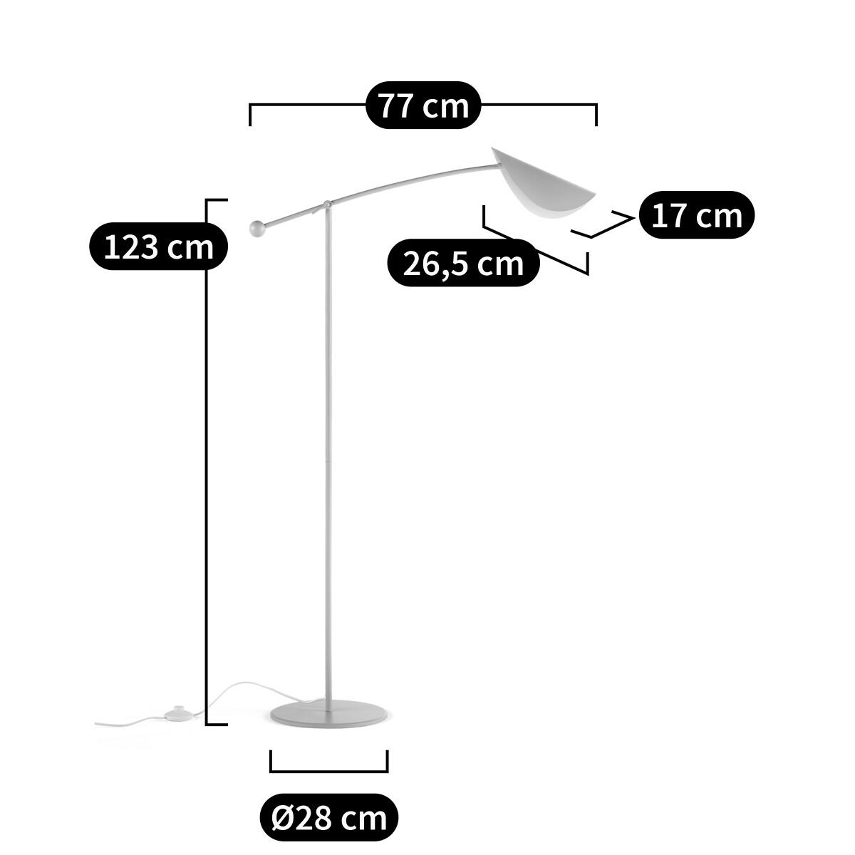 Aerial, the Funambule reading lamp is inspired by a mobile with a leaf-shaped lampshade. Adjustable, the lampshade allows lighting directed where you want it. Product Details • Iron with matte grey epoxy finish • Adjustable arm and lampshade • E14 socket for 8W max bulb (not supplied) • Compatible with bulb energy classes A to EDimensions • Floor lamp: Width 28cm x Height 123cm x Depth 77cm • Lampshade:Length 26.5cm x Width 17cm x Height 7cm • Base diameter 28cm. Dimensions and weight of parcel • 1 parcel • L71 x H24 x D34cm, 6.3kg