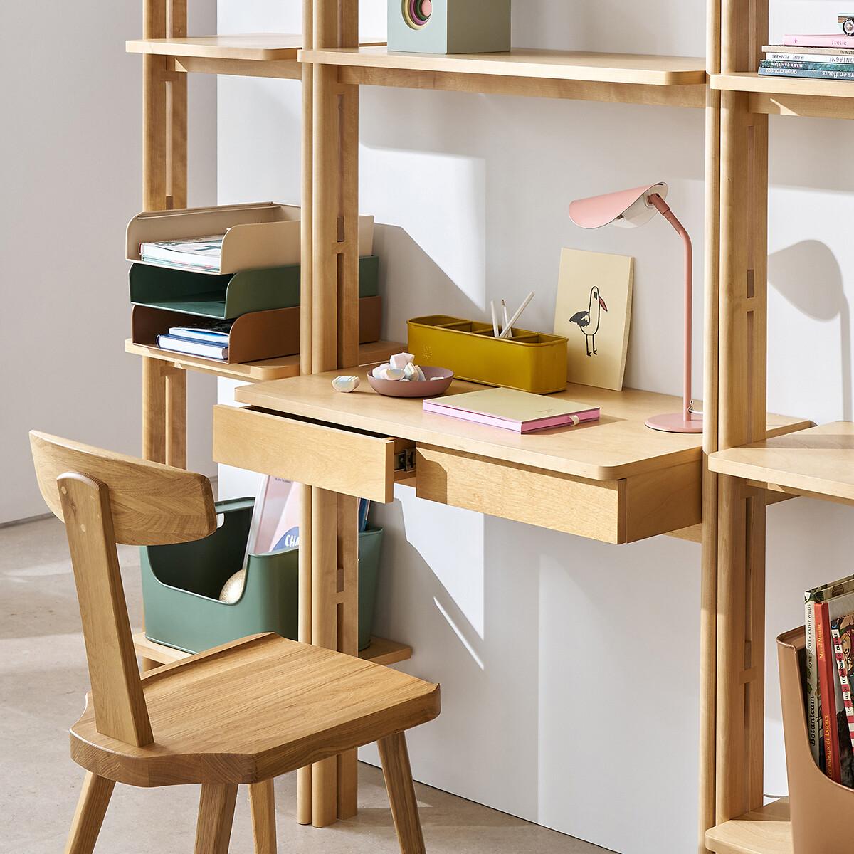 With a light and refined design and an adjustable shade in the shape of a leaf, Funambule is a small format lamp that can be positioned on a desk or a bedside table. Ideal in a teenager's room.
