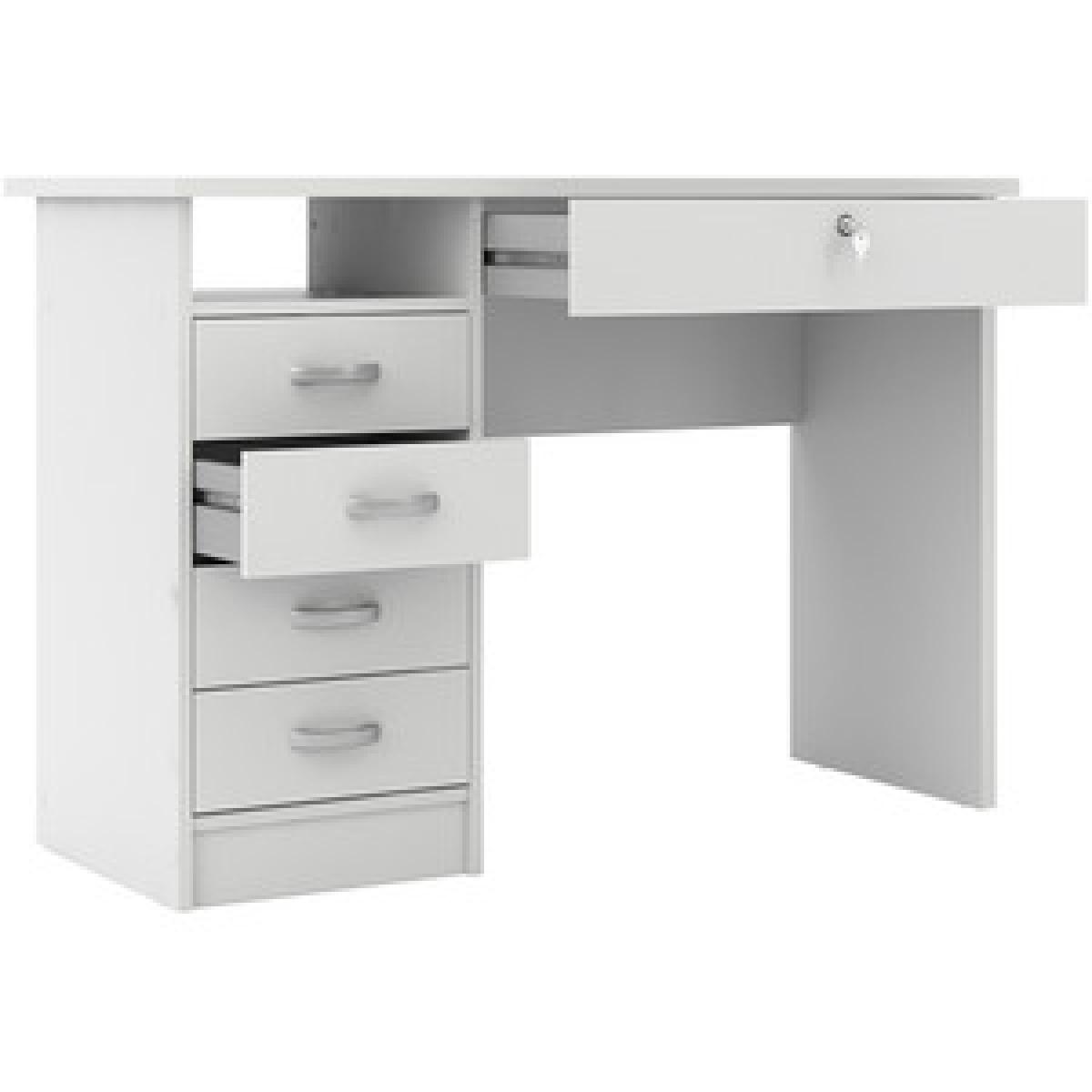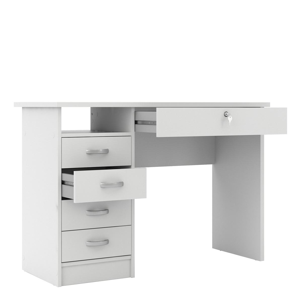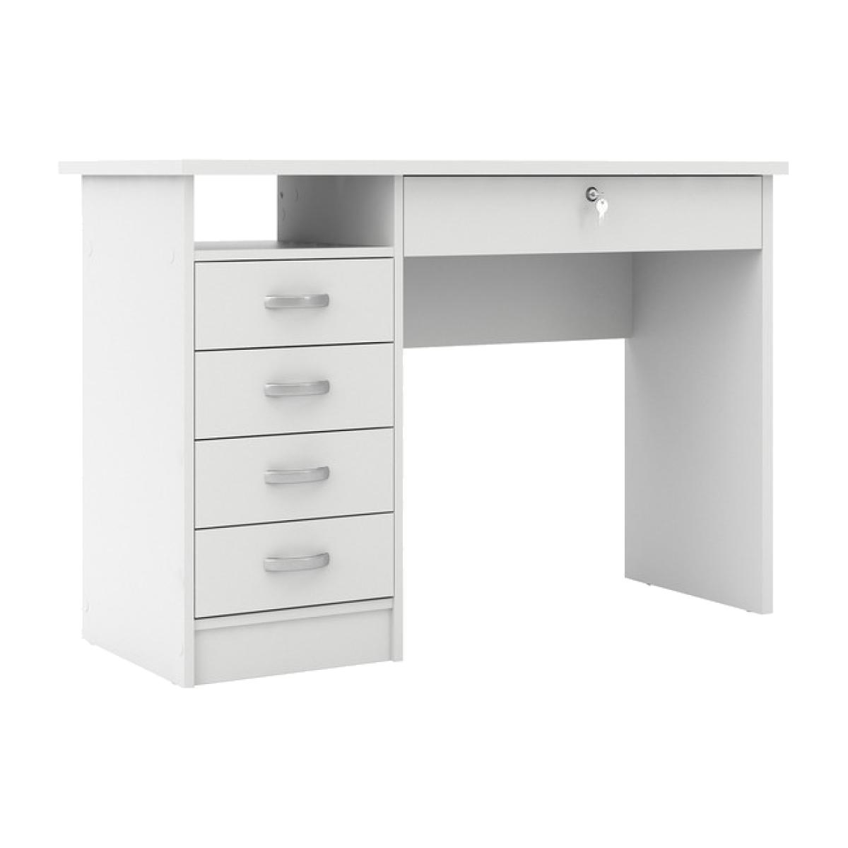 The white desk with five drawers is a versatile addition that works particularly well in both modern and minimalist interiors, providing a clean, fresh look that can easily be dressed up or down. I love its practical design, offering excellent storage to keep clutter at bay, which makes it ideal for home offices or study corners. When styling, consider pairing it with contrasting textures like a soft fabric chair or a colourful desk lamp to add personality, or position it near natural light to enhance its crisp white finish. Keeping accessories minimal and organised can maximise its sleek design, ensuring it remains both functional and stylish in a variety of interior schemes.