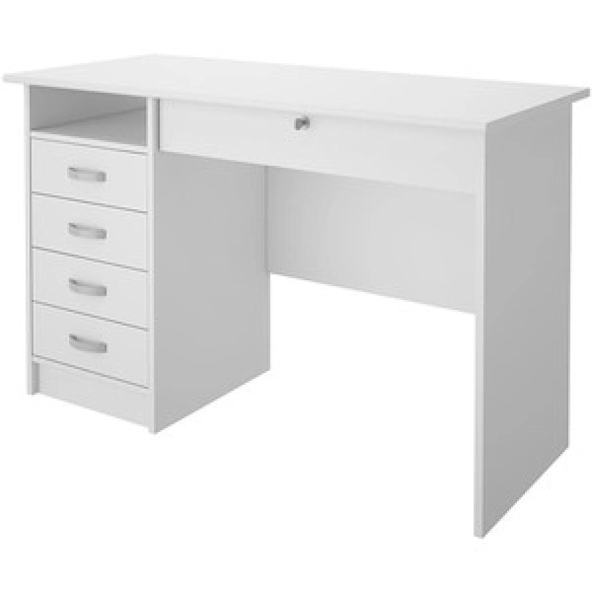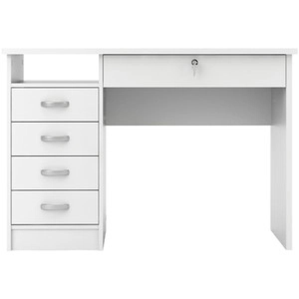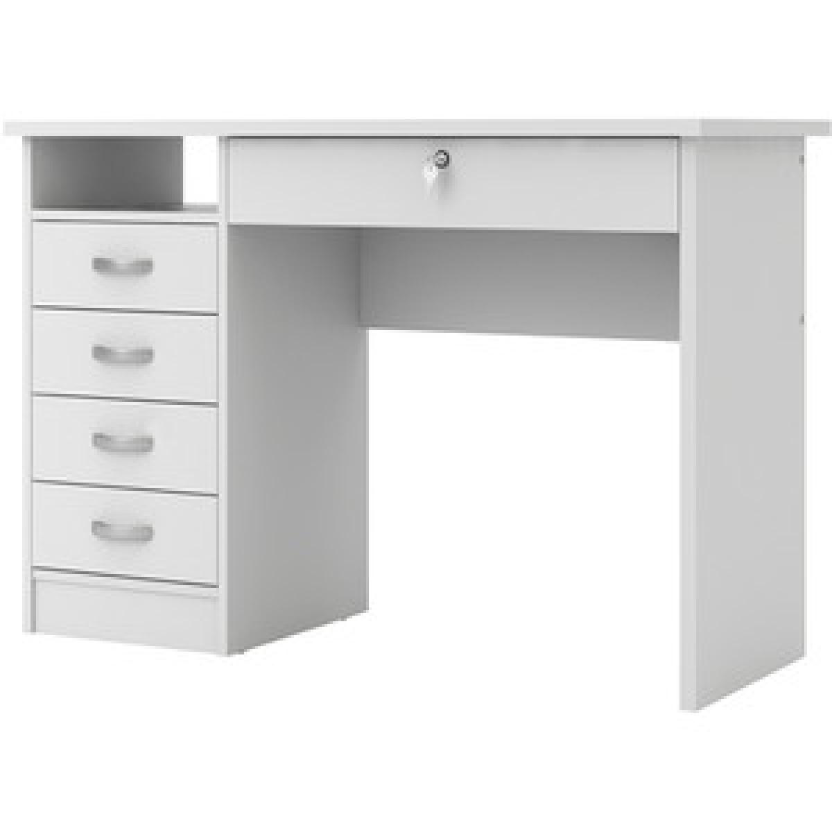 The white desk with five drawers is a versatile addition that works particularly well in both modern and minimalist interiors, providing a clean, fresh look that can easily be dressed up or down. I love its practical design, offering excellent storage to keep clutter at bay, which makes it ideal for home offices or study corners. When styling, consider pairing it with contrasting textures like a soft fabric chair or a colourful desk lamp to add personality, or position it near natural light to enhance its crisp white finish. Keeping accessories minimal and organised can maximise its sleek design, ensuring it remains both functional and stylish in a variety of interior schemes.