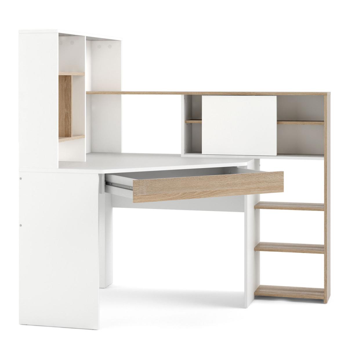 The Function Plus Multifunctional Corner Desk is designed to be practical in even the smallest of spaces. This desk will either tuck neatly into a corner or float in the room to make it a true modern workstation. The desk includes a drawer as well as an attached storage unit to keep your office supplies neatly out of sight and your books organised. The desk also features metal drawer runners, and a modesty panel, and has been made using environmentally friendly materials.