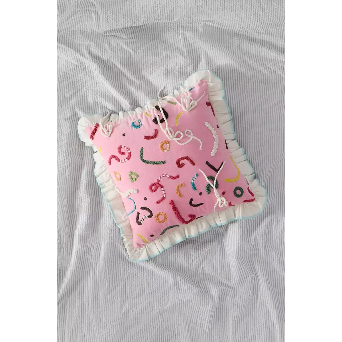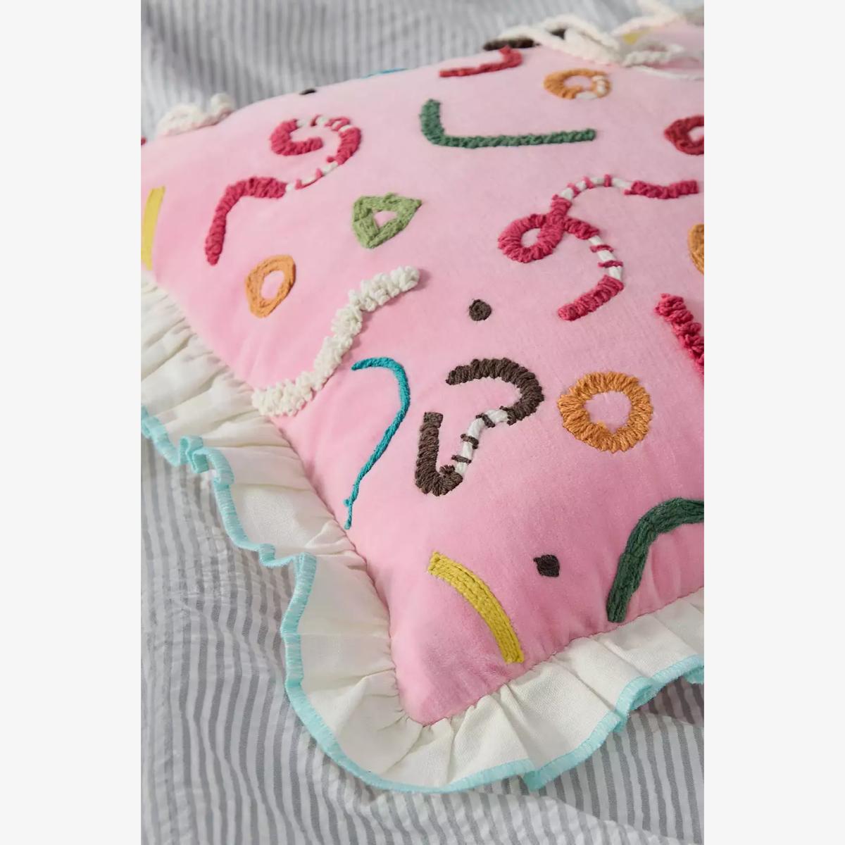 Vibrant cushion with an embroidered confetti design. Classic square shape complete with ruffled edges for a romantic finish. **Content + Care** \- Outer: 100% Cotton \- Filling: 100% Polyester \- Removable insert \- Spot clean only **Size** \- 45cm x 45cm