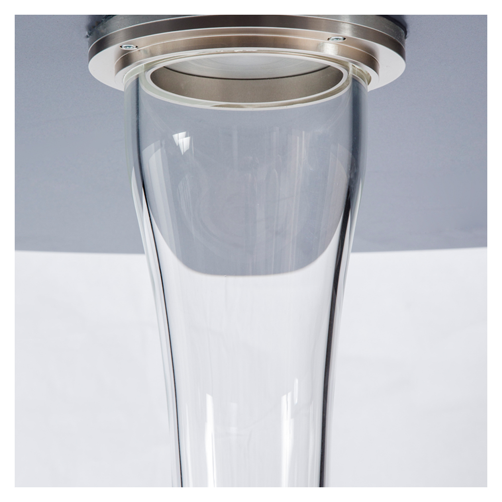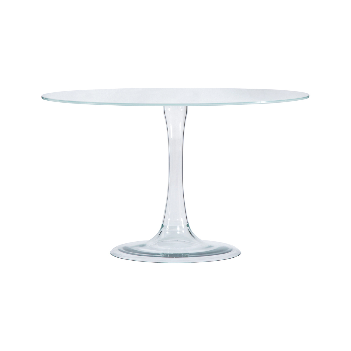 The epitome of Italian design, Glas Italia produces exquisite handcrafted glass furniture in the town of Macherio near Milan. The Funghetti dining table by designer Piero Lissoni, is a perfect example of their Italian craftsmanship and modernism. Modern and minimal, this high round table is made of 12mm thick transparent extra-light, tempered, lacquered opaque glass. The extra thick base is made of borosilicate transparent glass, moulded and shaped by hand. The top is fixed to the base through metal plates. A beautiful and contemporary design, this Funghetti Dining Table by Piero Lissoni would enhance any dining area.