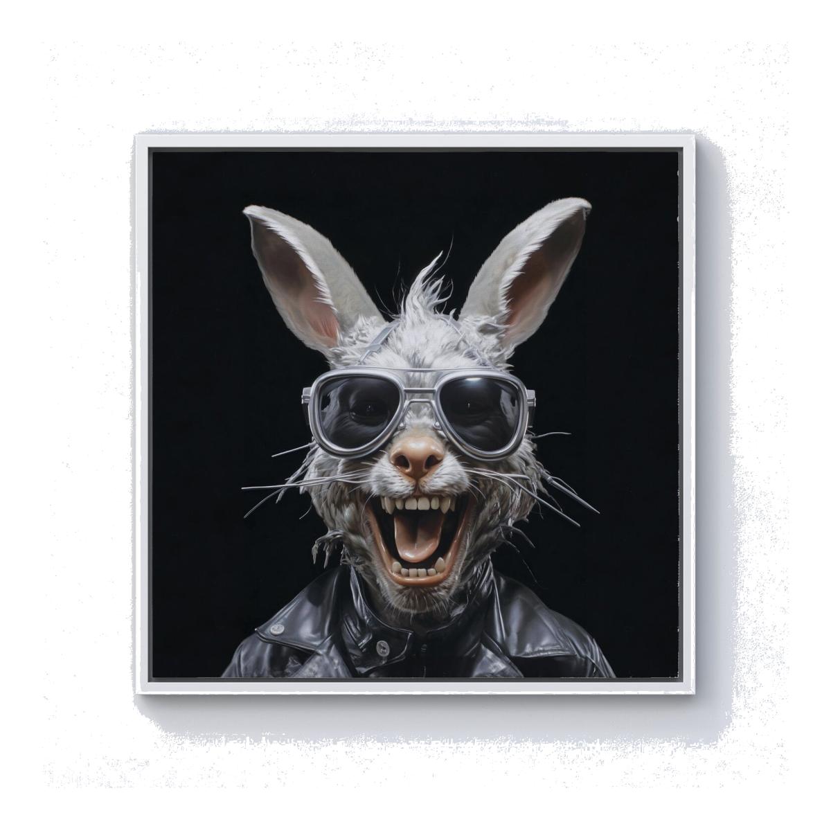 Funky Rabbit Face With Glasses Canvas Print - Grey / 76.2cm / White Frame