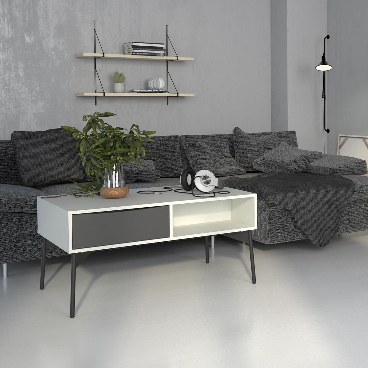 The Fur 1-Drawer Coffee Table is simply beautiful. It boasts a distinctive design that will not go unnoticed in a stunning minimalist look that will be easy to coordinate throughout your space. Featuring storage space in the form of a drawer and a shelf, you've plenty of space for a cup of tea, an ornament, and your TV remotes. Finished with a high-quality laminated board, it's resistant to damage and scratches, moisture, and high temperature.