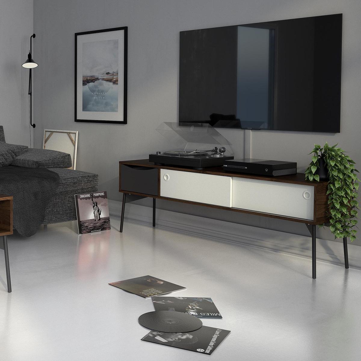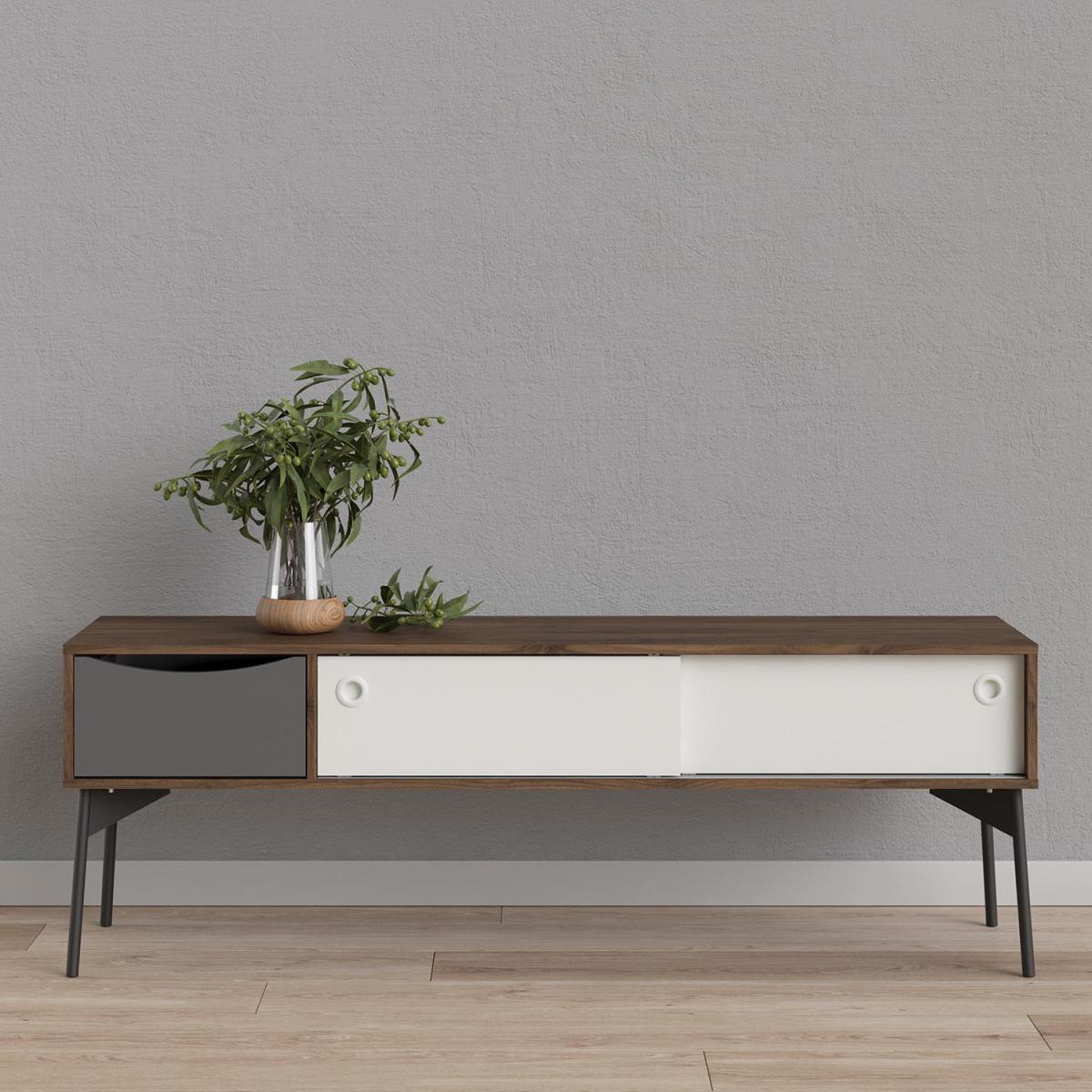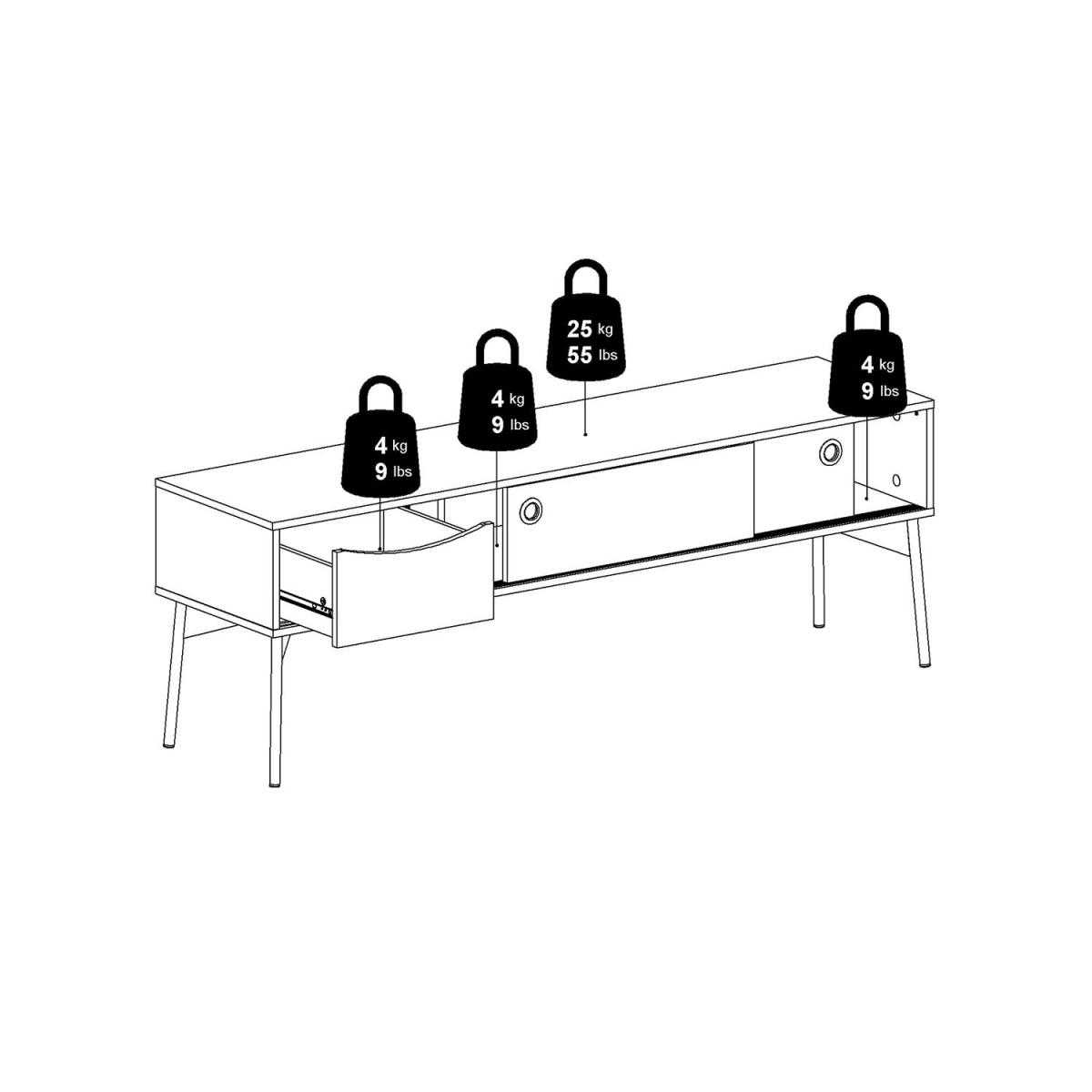 The Fur TV-Unit is simply beautiful and is sure to look impressive in your space. It boasts a distinctive design that will not go unnoticed and offers plenty of storage space behind the sliding doors and inside the drawer. The ideal size for most TVs and your other electronics, it's easy to coordinate amongst your existing decor. Finished with a high-quality laminated board, it's resistant to damage and scratches, moisture, and high temperature for your convenience.