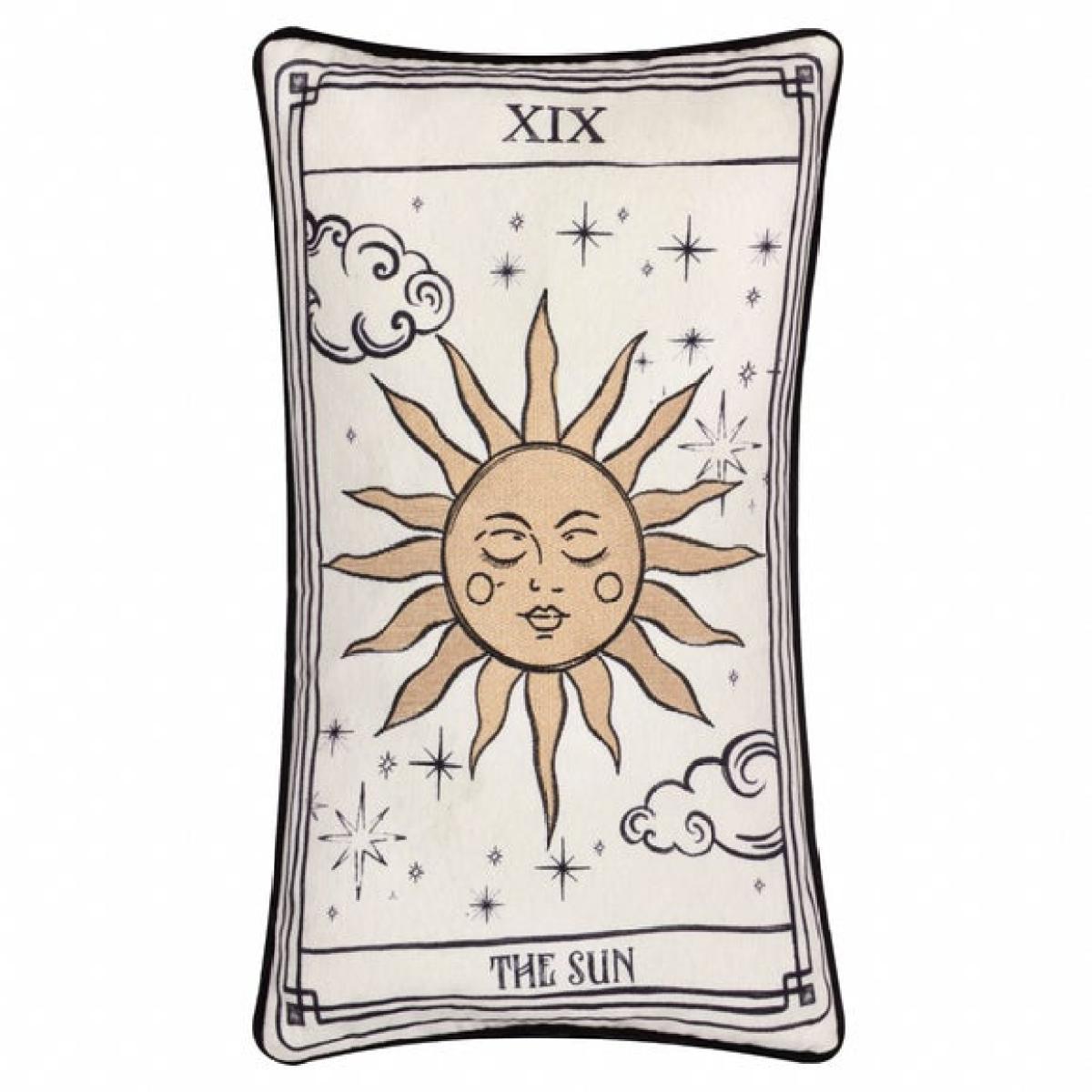 * Beautiful embroidered detail * Lovely piped trim * Completed with a discreet zip closure Invite the magic of the cosmos into your home with the Celestial Stories Cushion Cover. Intricate embroidery brings a tarot-inspired sun to life, radiating mystery and wonder. Crafted from a sumptuous velvet base with a matching reverse, it offers both comfort and celestial elegance. A piped trim and discreet zip closure add a refined finishing touch, making it as practical as it is enchanting. Perfect for creating a dreamy, otherworldly vibe in any space.