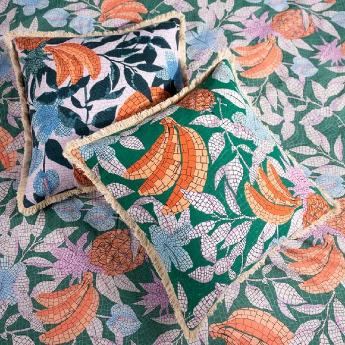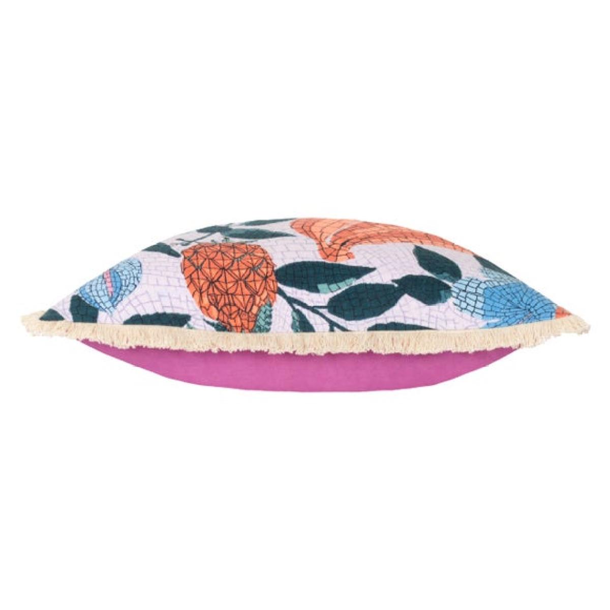 * Bold fruits and floral design * Inspired by Mediterranean mosaic tiles * Complete with a plain reverse * Natural fringed trim * Zip fastening * Available in another colourway Infuse your space with Mediterranean charm with our Furn Cypress Cotton Square Cushion. Featuring a bold fruit and floral design inspired by classic mosaic tiles, this cushion is finished with a natural fringed trim for a relaxed, textured look. Complete with a plain reverse and a handy zip fastening, it’s available in another colourway so you can mix and match to suit your style.