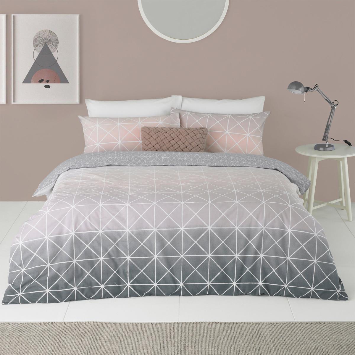 Furn. Spectrum Blush Ombre Reversible Duvet Cover and Pillowcase Set Blush, Grey and White
