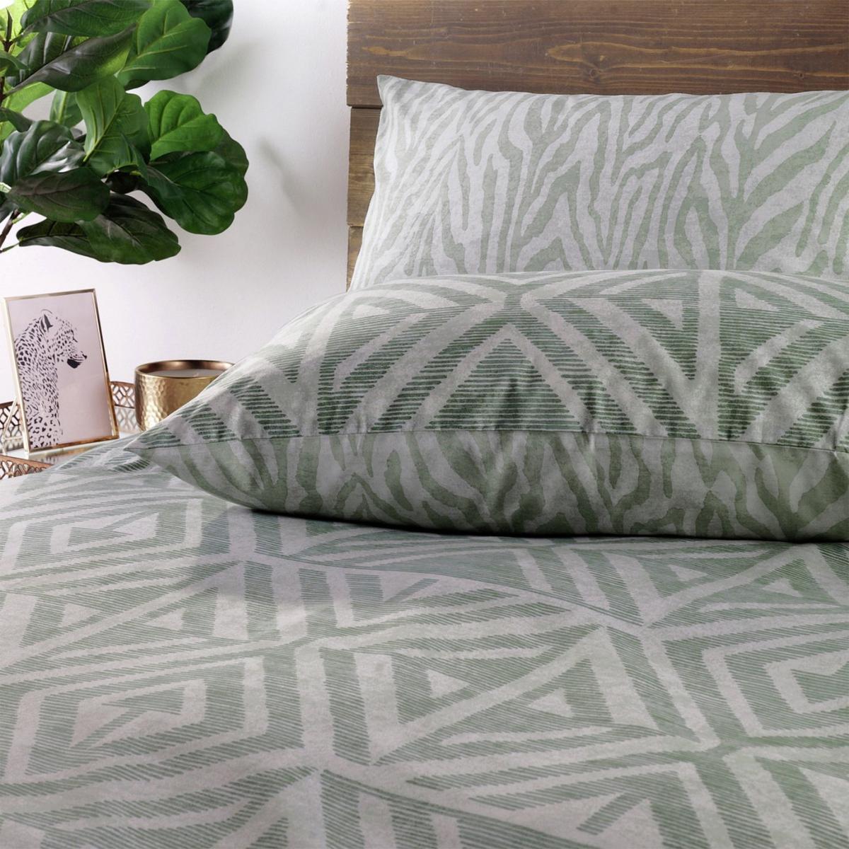 A soft, global-inspired geometric print - perfect for adding texture and warmth to your bedroom. Featuring a tonal animal print reverse print, for a softer alternative when you need it. Featuring a global inspired geometric print with a tonal animal print reverse. 50% cotton , 50% polyester. 144 thread count. Set includes 1 duvet cover and 2 pillowcases. Bed size: double. Length 200cm, Width 200cm. Reversible. Buttons for fastening. Standard pillowcase (s). Pillow case length 75cm, Width 50cm. Machine washable. Suitable for tumble drying.