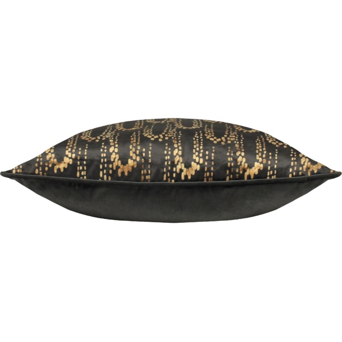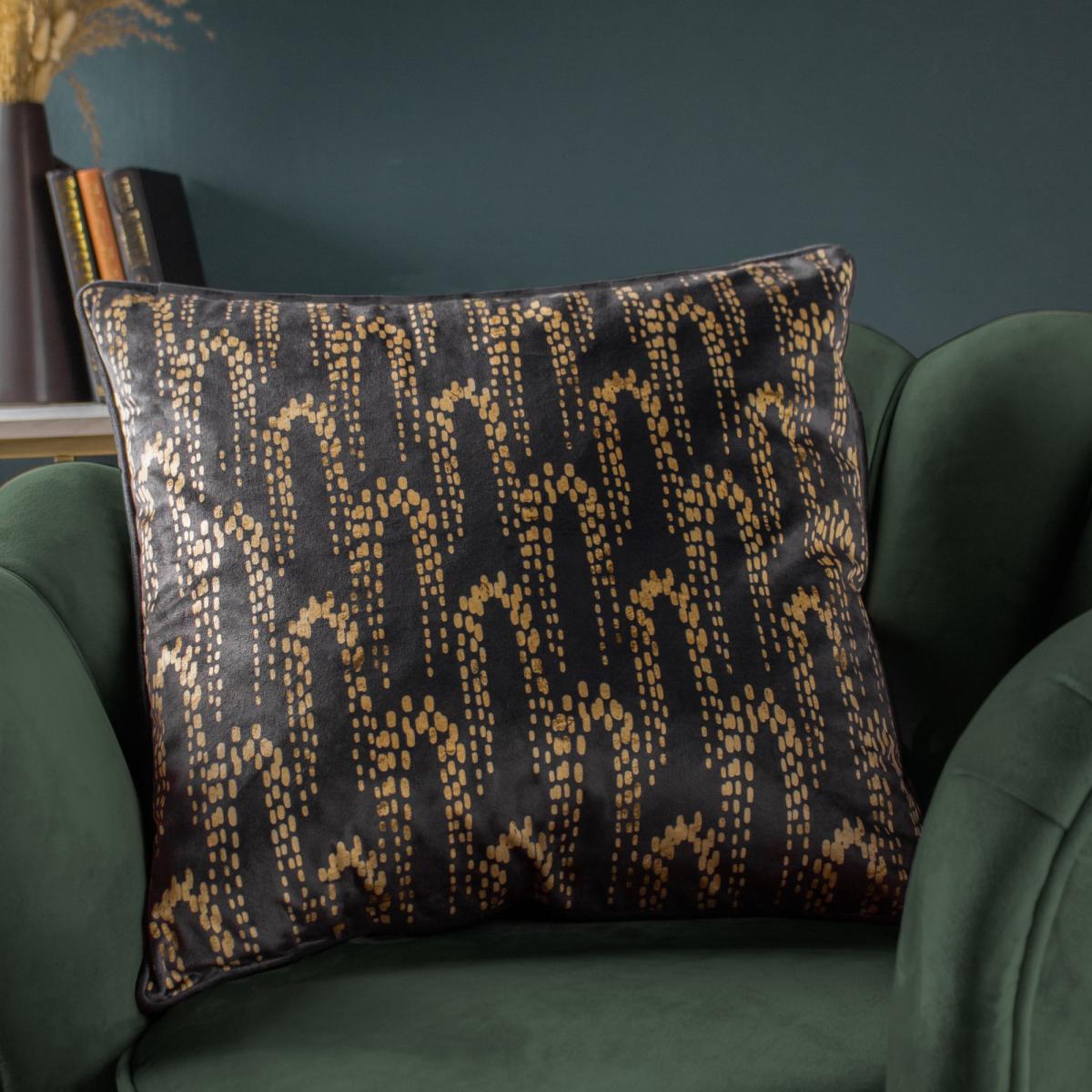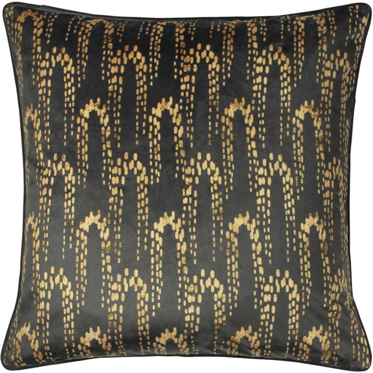 The Wisteria Printed Velvet Feather Cushion, measuring 50x50 cm, brings a luxurious and elegant touch to any interior. Crafted from 100% polyester, this square-shaped cushion features a soft velvet finish, piped trim, and a convenient zip closure for easy care. This large cushion combines comfort and style, making it a perfect accent piece for sofas, beds, or armchairs Features:  Size 50 x 50cm Colour - Charcoal Also Available in Gold. Feather Filled Care instructions: Dry clean only Do not Iron. All screens vary in colour reproduction and whilst every effort has been made to display the colour as accurately as possible it is for guidance only.