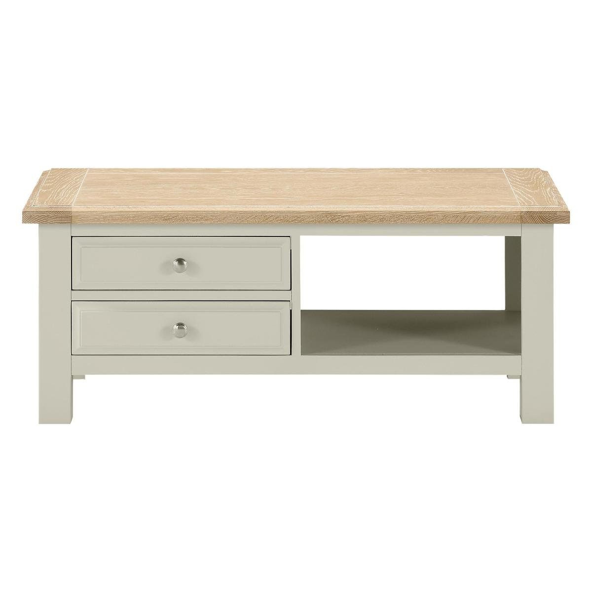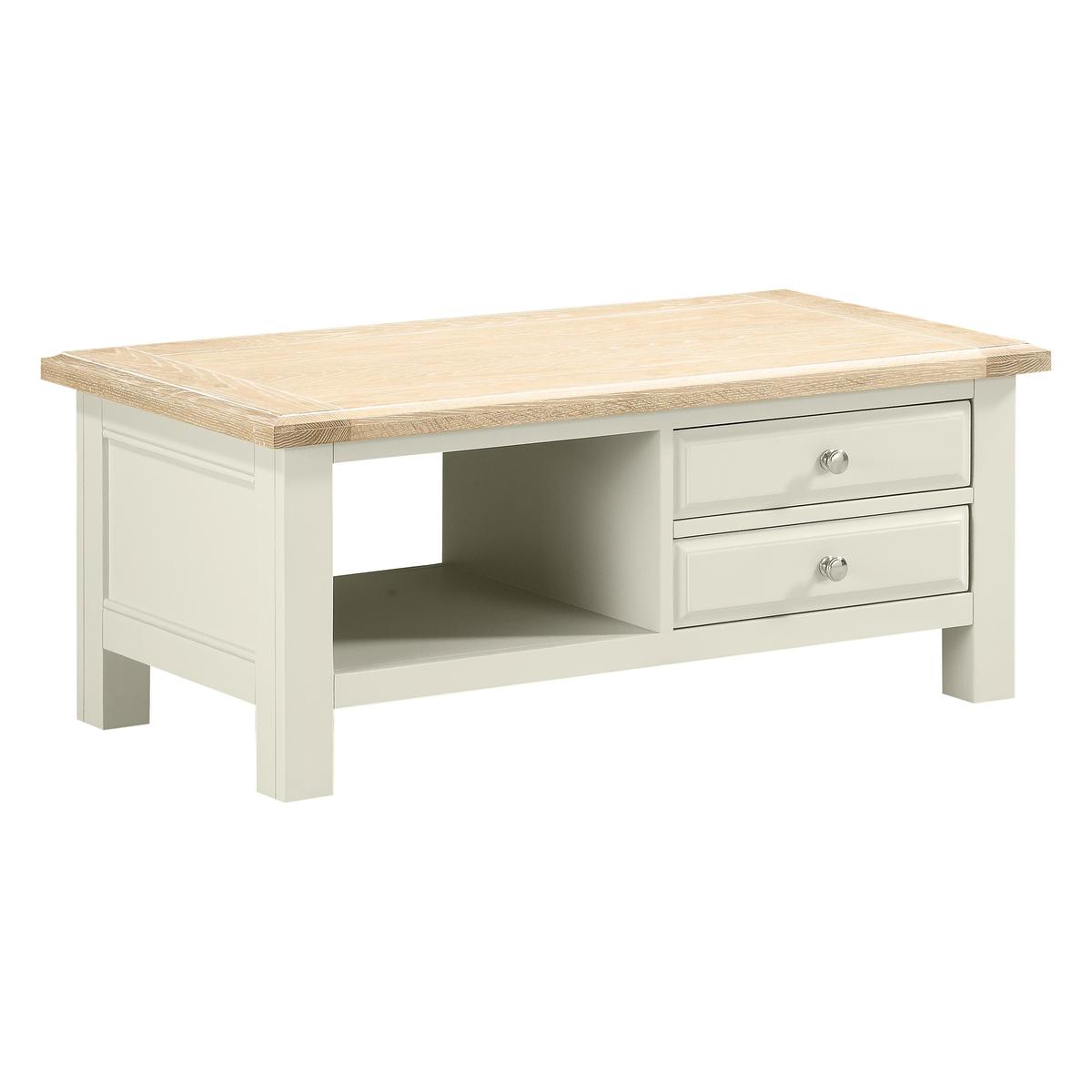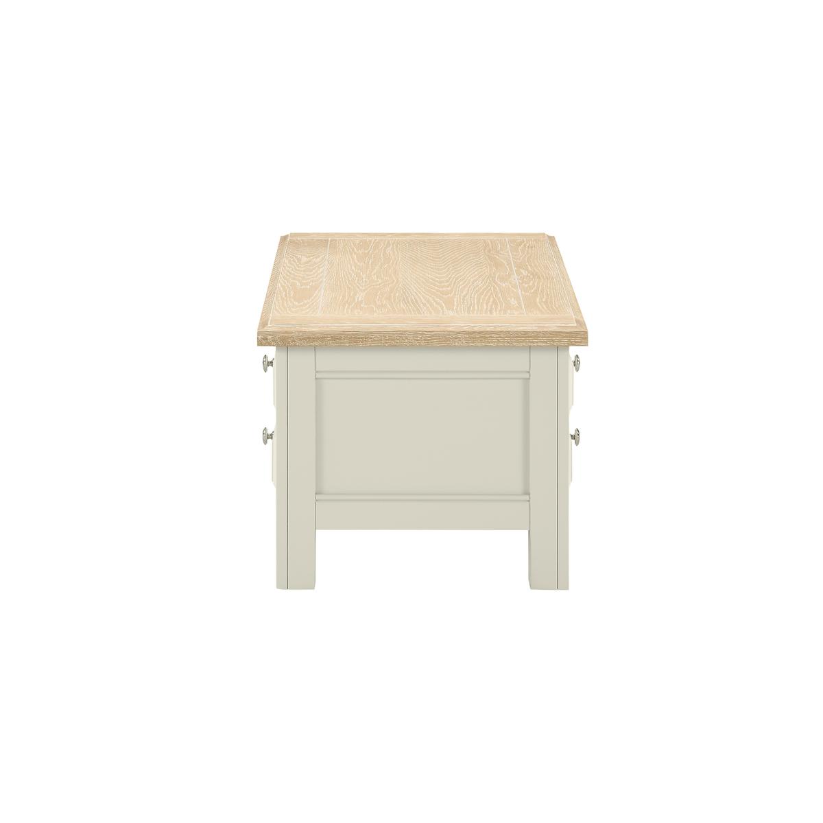 Style and utility come together beautifully in the Angeles coffee table. With a spacious top, wide alcove and three roomy drawers, this coffee table offers exceptional storage for everything you want to keep close at hand – books and magazines, TV remotes and coasters, board games and packs of cards. It’s also extremely well made, with a solid pine frame painted off-white, and a top made of solid oak and oak veneer, hand finished with a stylish wash that enhances the wood grain. Drawer and table top edges are bevelled, and drawers have neat round metal handles. The Angeles coffee table is part of the Angles range of living and dining room furniture. The collection offers a wide variety of occasional tables and storage pieces, including a lamp table, a display cabinet and a bookcase, as well as an extensive selection of dining room furniture. All pieces are exclusive to Furniture Village. Natural wood has unique grain, knots and markings. Every piece is different.