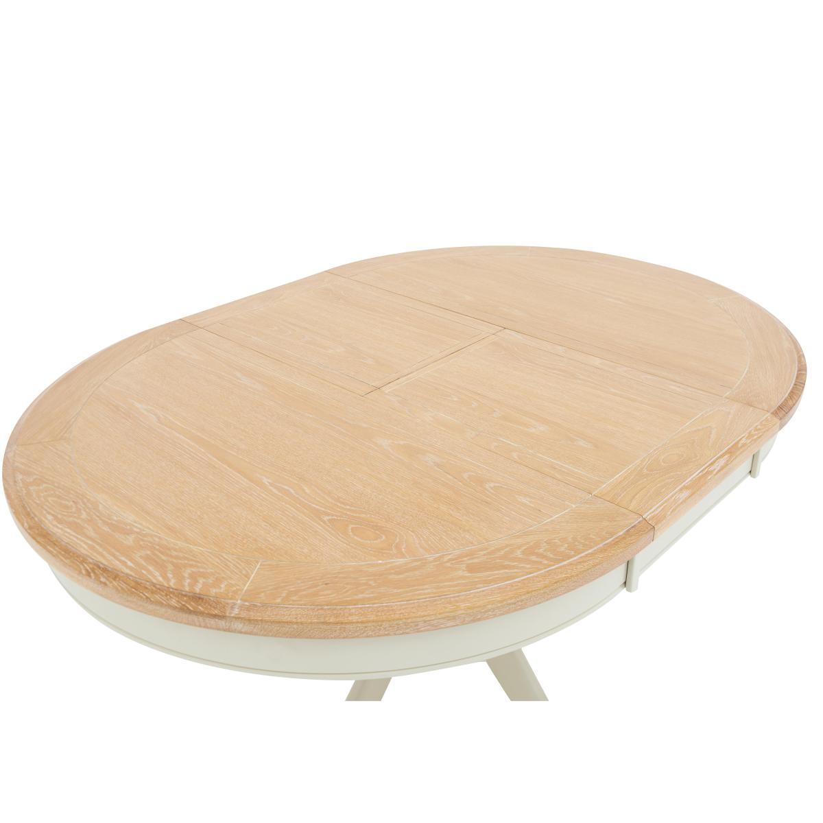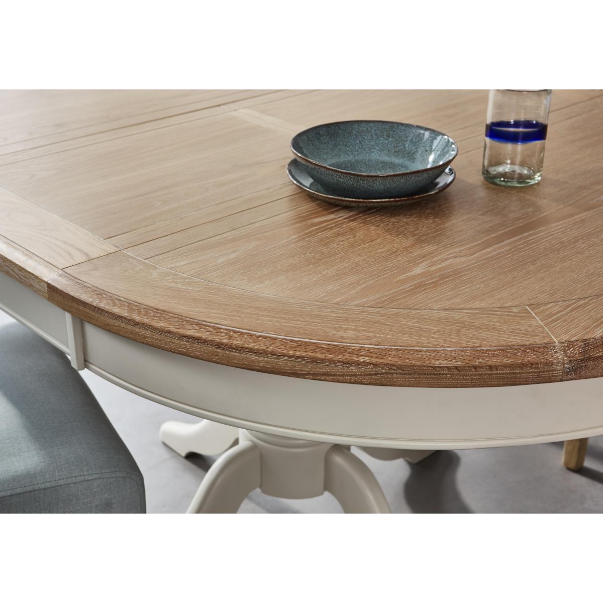 Versatile, stylish and beautifully finished, Angeles has something for every home. With its clean-lined, modern country style, this extensive range includes three different extending dining tables and three different dining chairs, so you can mix and match to create your perfect dining room. Complete the look with sideboards or a glazed hutch, and then introduce Angeles’ relaxed contemporary style into your living space with a wide selection of occasional tables and storage units. Creativity and craftsmanship shine in the Angeles round extending dining table and 4 button back dining chairs set. The circular dining table, which extends to seat six with a smooth butterfly mechanism, has a stunning hand-finished oak and oak veneer bevelled edge top with a fashionable wash that highlights the wood grain. The sturdy pedestal base is made of solid pine painted an off-white colour. The four accompanying dining chairs, fully upholstered in a linen-effect fabric and available in a choice of ten gorgeous colours, have beautiful buttoned backs and gently rolled tops. Hardwood frames, oak legs and serpentine sprung seats ensure that these sturdily-built chairs are also supremely comfortable. The great value Angeles round extending dining table and 4 button back dining chairs set is part of the Angeles living and dining collection. Angeles offers a wide range of versatile furniture for dining rooms and living spaces. Only at Furniture Village. Natural wood has unique grain, knots and markings. Every piece is different.