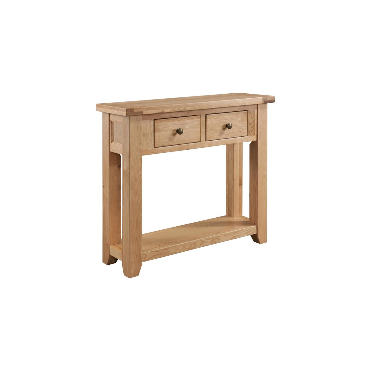 Dine à la carte with California. Choose a round, rectangular or square flip top table as your main, then add one of four delicious styles of side chair. Like well-chosen flavours, everything’s designed to go together beautifully. This fresh, timeless collection also has coordinating occasional furniture on the menu. Made from solid and veneered American oak at a great value price. Perfect for hallways and dining rooms, the slender Furnitureland California console table offers stylish yet compact storage, and a lovely surface for a lamp or framed family photos. Handcrafted from American white oak and oak veneers, this neat console table displays a wealth of well-crafted details, from the overhanging top to the metal drawer handles to the squared legs with tapered feet. And with two drawers and a lower shelf, it also offers a surprising amount of storage and display space. It’s finished with a clear lacquer that both preserves and enhances the wood. Perfect for your relaxed and casual home style, the Furnitureland California console table is part of the Furnitureland California collection of living and dining room furniture. If you love this piece’s clean lines and lovely finish, take a look at the Furnitureland California coffee table and the Furnitureland California lamp table, too. WARNING!. Furniture can tip over unexpectedly and cause injury. This item shall be fixed to a wall using the anti-tip kit provided with the furniture. Be sure to use the correct wall fixings suitable for the walls in your home. Did you know?. Oak is natural with characterful knots and markings, every piece of furniture is unique.