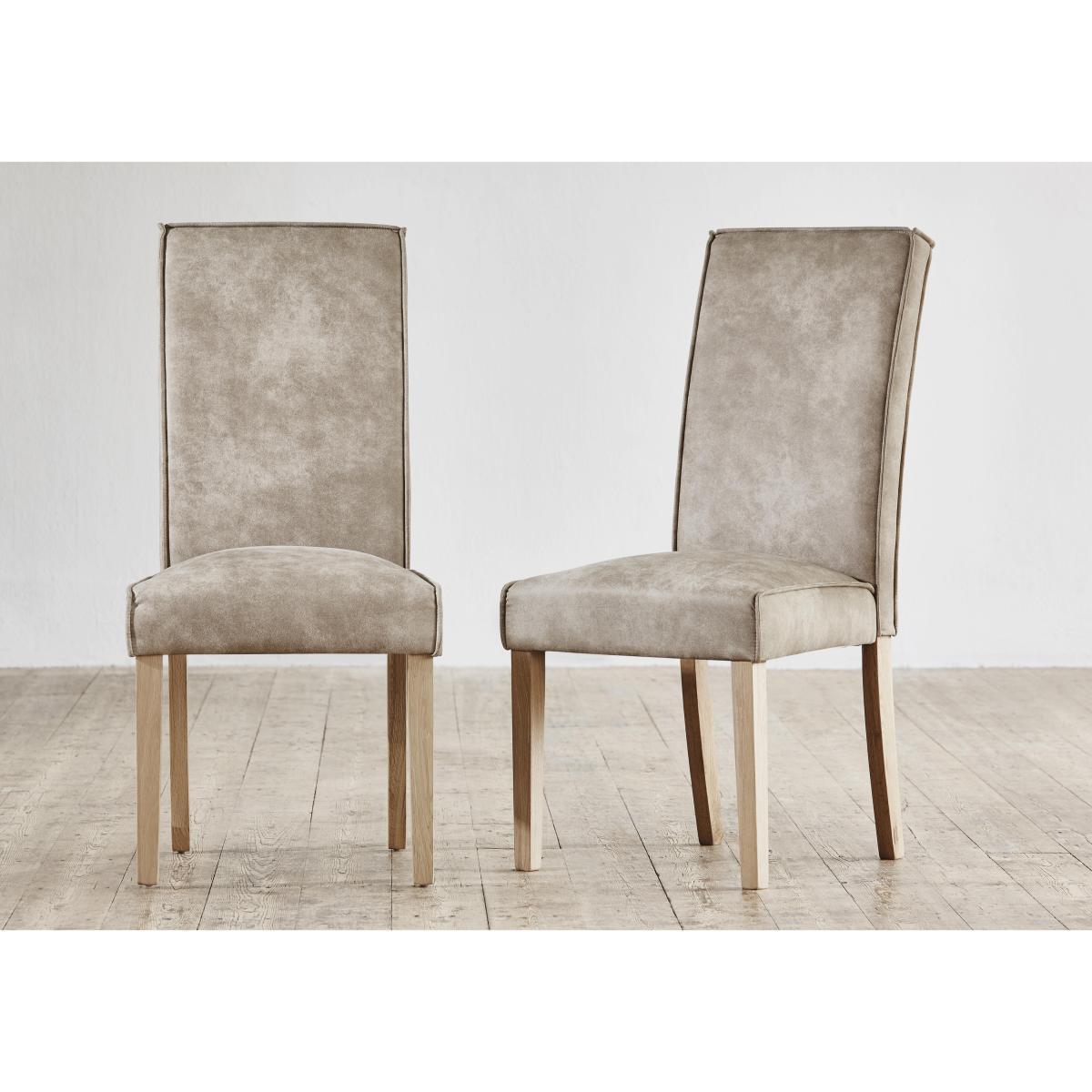 Dine à la carte with California. Choose a round, rectangular or square flip top table as your main, then add one of four delicious styles of side chair. Like well-chosen flavours, everything’s designed to go together beautifully. This fresh, timeless collection also has coordinating occasional furniture on the menu. Made from solid and veneered American oak at a great value price. The Furnitureland California pair of faux suede dining chairs are the perfect combination of elegant style and modern comfort. Softly cushioned and beautifully finished with piping. Why you’ll love it. Beautifully crafted, traditional style. Expertly handcrafted. Hardwood frames. Solid oak legs finished with a clear lacquer. Cushioned, upholstered seats and backs. Upholstered in cream faux suede, finished with piping. The chairs’ legs are tapered and the backs are curved. Part of the extensive California range of dining and occasional furniture. What you need to know. Strong and sturdy, handcrafted to last. Tighten leg bolts every 3 to 4 months. Hardwood frames and solid oak legs. The chairs’ upholstery is easy-care, cream coloured faux suede. Finished with piping for added strength. California furniture is made of solid wood so every piece is unique, with its own natural markings, knots and colour variations. Easy to clean. Wipe with a damp, non-abrasive cloth. For more advice on caring for your California furniture, see our Dining Care Guide.