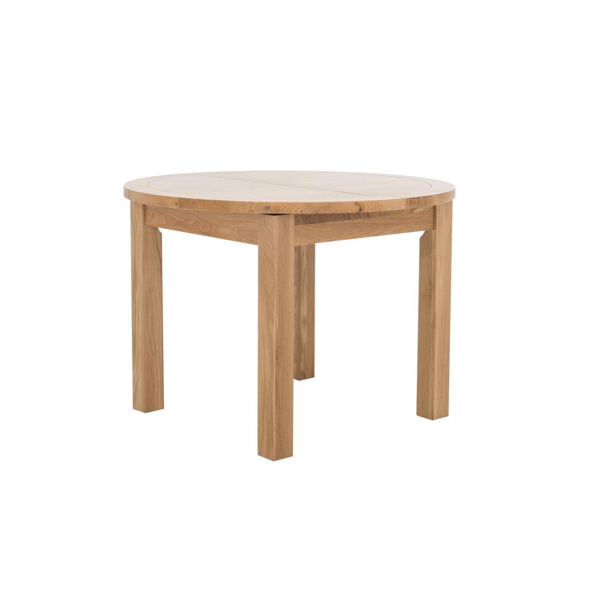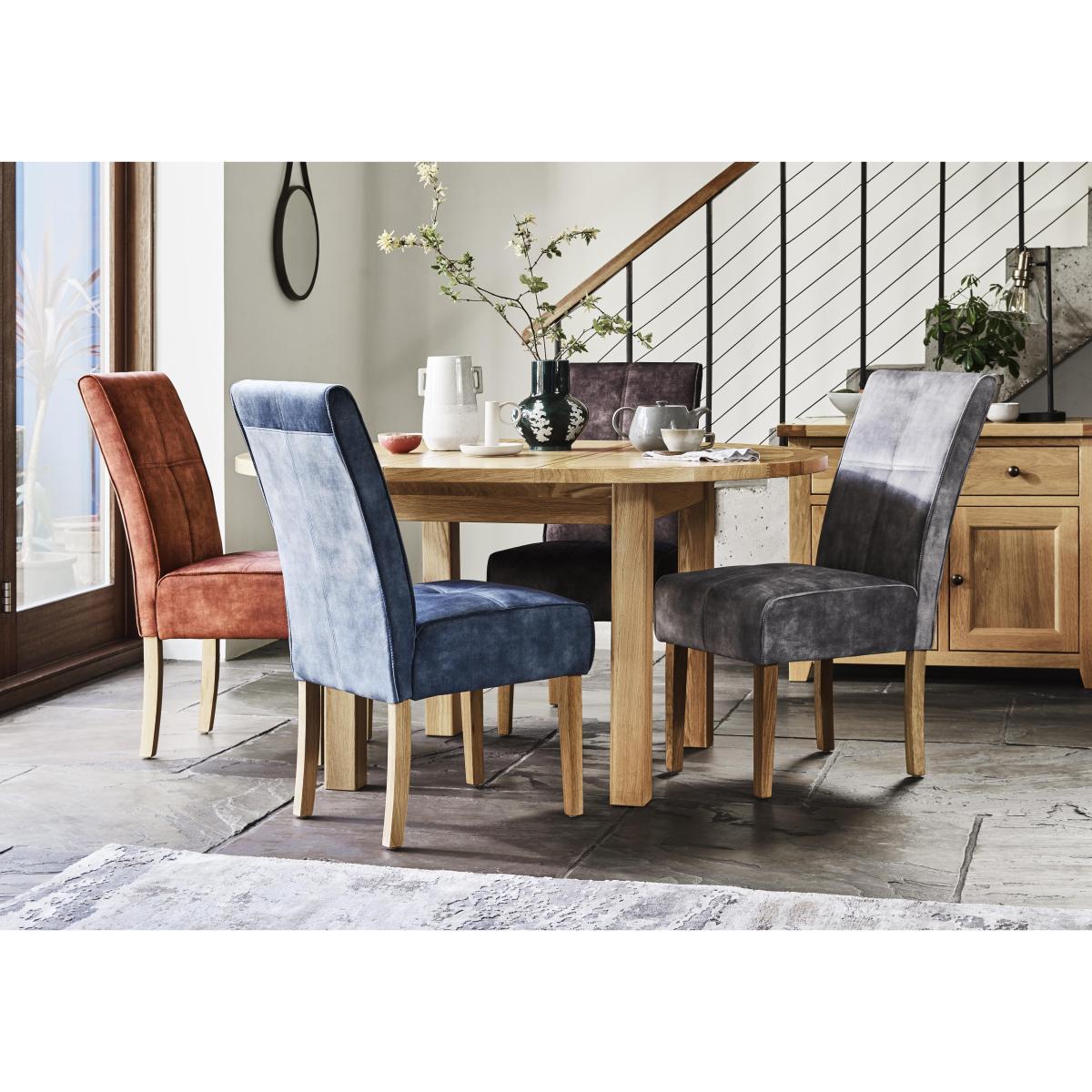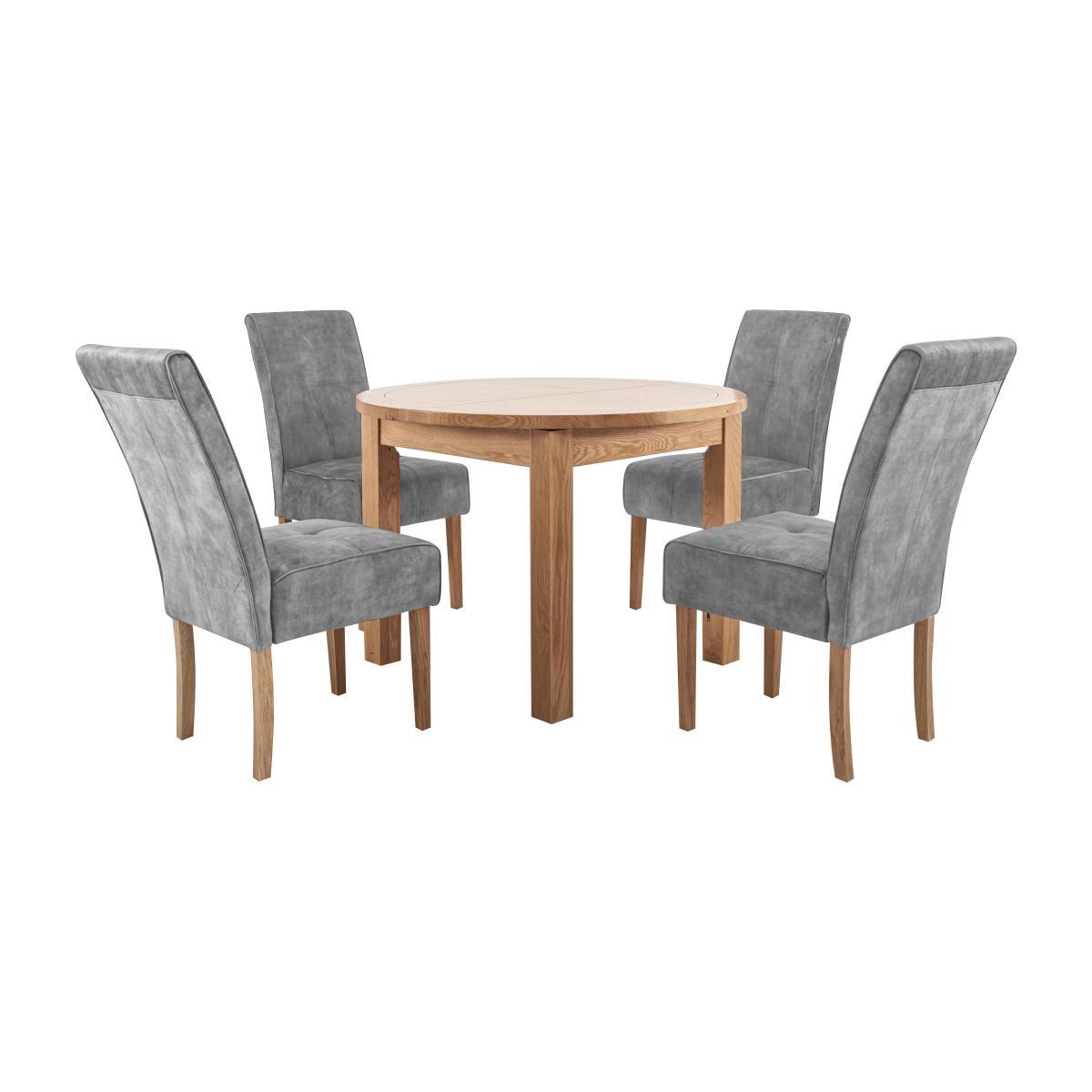 Furnitureland - California Solid Oak Round Extending Table and 4 Velvet Fabric Dining Chairs
