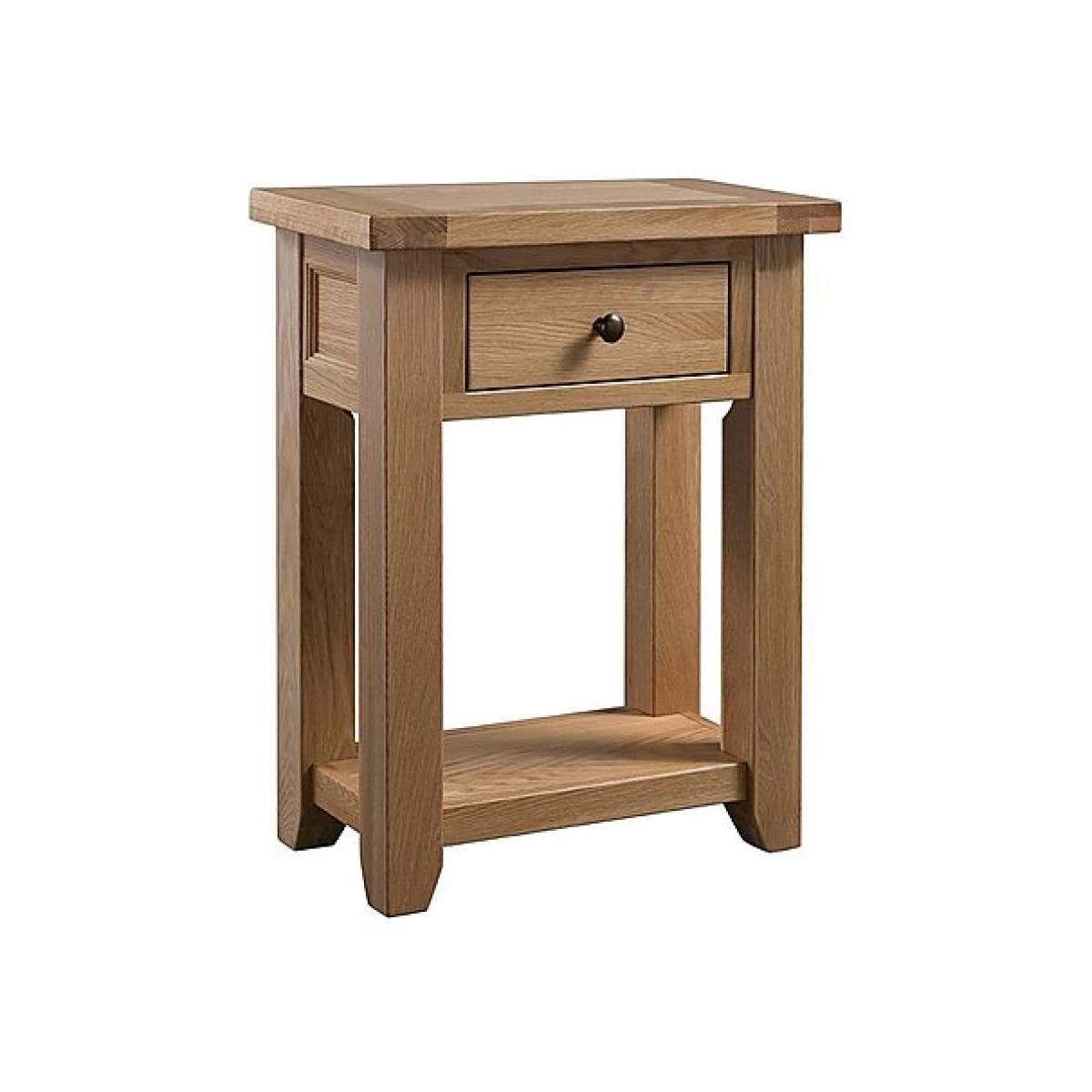 Please note: this clearance item has limited stock and is subject to availability. If you love the look of a console table but have a smaller space, the Furnitureland California small console table is for you. Perfect for more compact living rooms and hallways, this lovely console table is handcrafted from American white oak and oak veneer, and features squared legs with tapered feet and an overhanging top. Its finished with a clear lacquer that protects the wood and gives it a lovely soft sheen. Style is match by by utility at every turn. As well as the good sized top, theres a lower shelf and a drawer, finished with a metal pull. The perfectly formed Furnitureland California small console table is part of the extensive Furnitureland California collection of occasional and storage furniture and dining room pieces. A large console table is also available and the range includes a wide choice of dining tables, dining chairs and dining sets. Did you know? Oak is natural with characterful knots and markings, every piece of furniture is unique. WARNING! Furniture can tip over unexpectedly and cause injury. This item must be fixed to a wall using the anti- tip kit provided. Be sure to use the correct wall fixings suitable for the walls in your home. Furniture Village is not able to fix anti- tip devices for you. Seek professional advice if you are unsure.