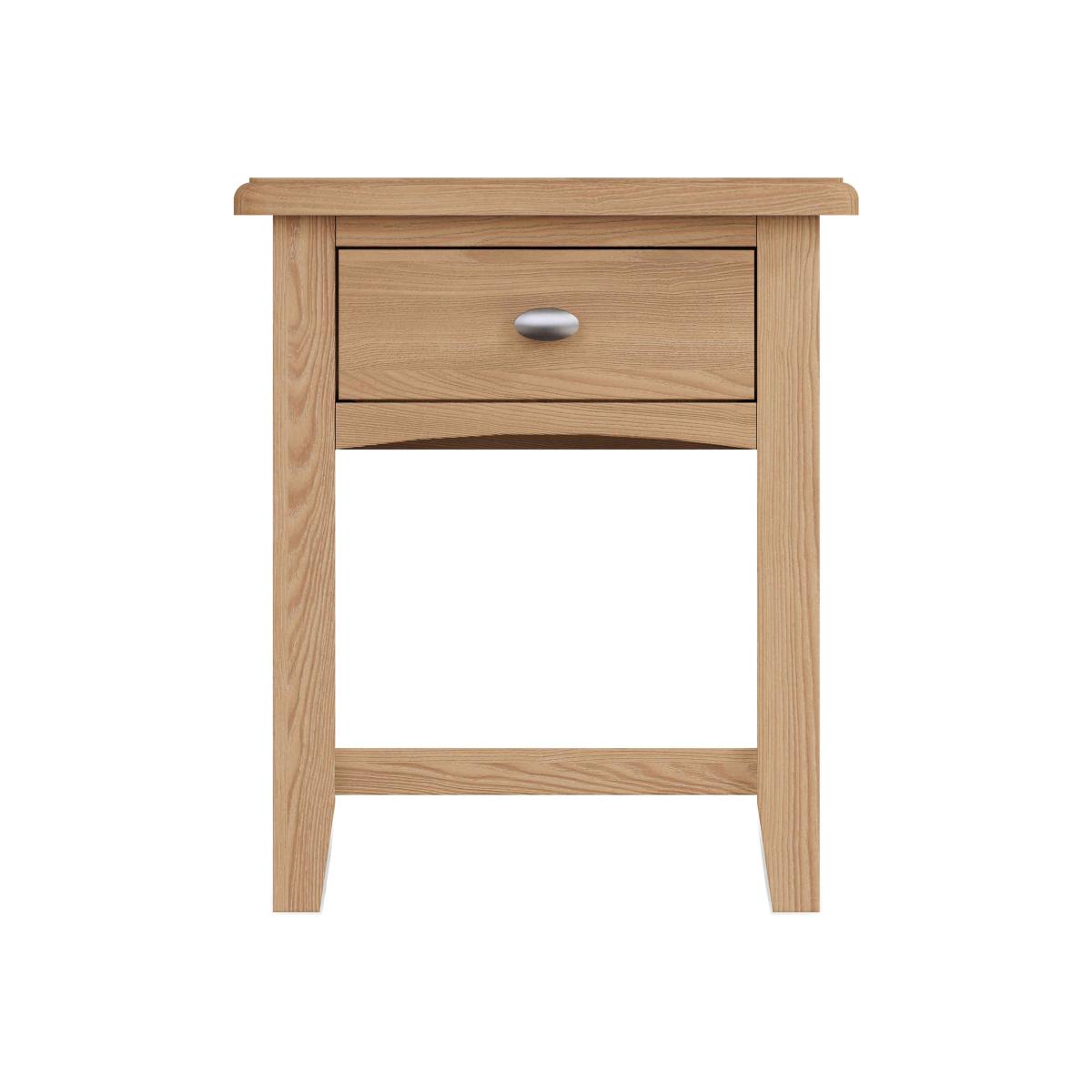 With a gently lacquered oak finish that reveals the true beauty of the wood, slender proportions and tapered legs, the furniture in the Cornwall range is elegant and timeless. And as it’s crafted with solid oak and oak veneer, this is furniture that’s designed to be used and enjoyed for years. Emphasising versatile and practical storage, the range includes lamp tables with storage baskets, occasional tables with shelf and drawer storage, nests of tables and even a wine cabinet. Furniture in the Cornwall range suits both traditional and contemporary homes and is delivered to you fully assembled. The lightly lacquered finish highlights the beautiful oak woodgrain of the Cornwall lamp table. There’s a drawer for those living room bits and pieces. Why you'll love it Timeless light oak furniture with elegant details. Crafted using solid oak and oak veneer. Slender proportions for rooms of all sizes. The lightly lacquered finish lets the beauty of the oak shine through. Tapered legs and brushed metal drawer handle. Arrives fully assembled. This 1-drawer lamp table is part of the Cornwall range. What you need to know Materials include solid oak, oak veneer and pine. Natural wood may show variations in colour, as well as filled knots and other markings. Avoid placing in direct sunlight or close to a heat source. Shop the Cornwall range for timeless and elegant oak furniture.