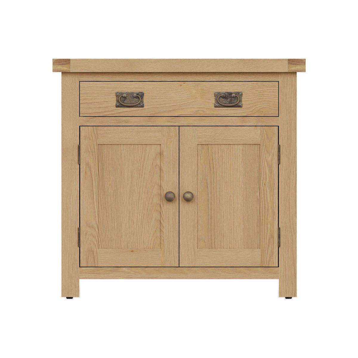 The beauty of real oak furniture plus all the practical storage a modern home could need – that’s our Dawlish range in a nutshell. Crafted with solid oak and oak veneers, the furniture in this collection showcases a natural wood look that’s gently rustic and utterly timeless. Browse this extensive collection of sideboards, storage cabinets, TV units and more in proportions from generous to cleverly compact. And once you’ve found the perfect combination of storage and style you can relax knowing that it’ll be delivered to you fully assembled. Sideboards don’t have to be large to be roomy. Our Dawlish small sideboard is a case in point: as well as timeless oak style it has plenty of cupboard and drawer space. Why you'll love it Classic oak furniture meets modern-day functionality. Exceptionally well crafted in solid oak and oak veneer. Rustic natural oak finish is so timeless. With drawer and cupboard storage space. Metal handles have an antique brass finish. Arrives fully assembled. This small sideboard is part of the Dawlish range. What you need to know Cupboard has 1 fixed shelf. Materials include solid oak, oak veneer and pine. Natural wood may show variations in colour, as well as filled knots and other markings. Avoid placing in direct sunlight or close to a heat source. The Dawlish range features a high choice of storage pieces and occasional tables. WARNING!