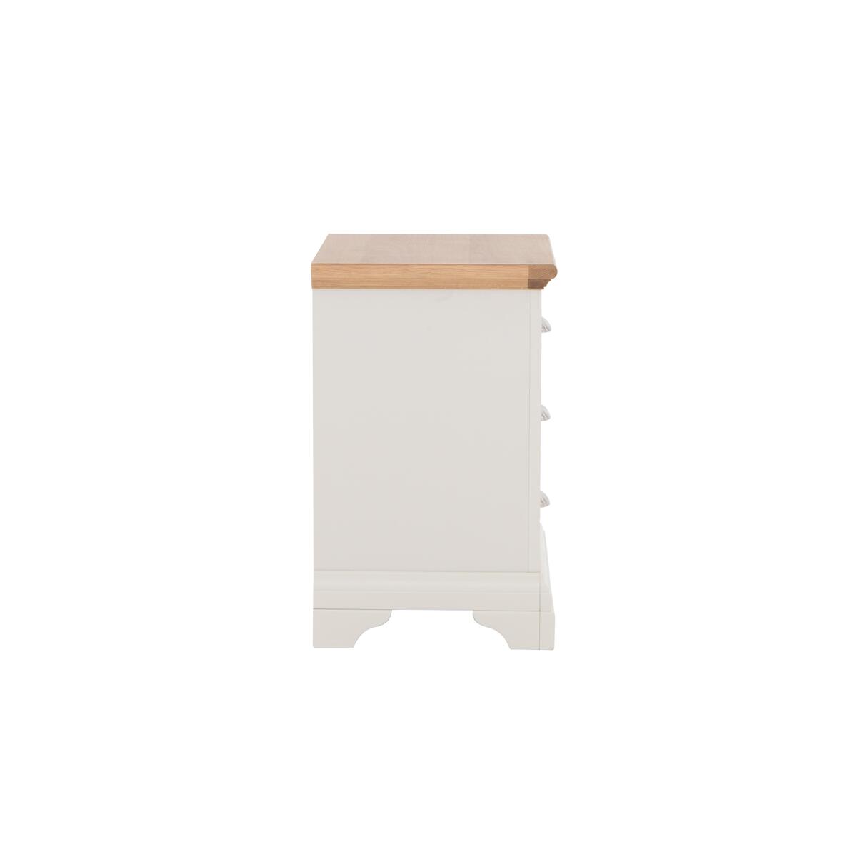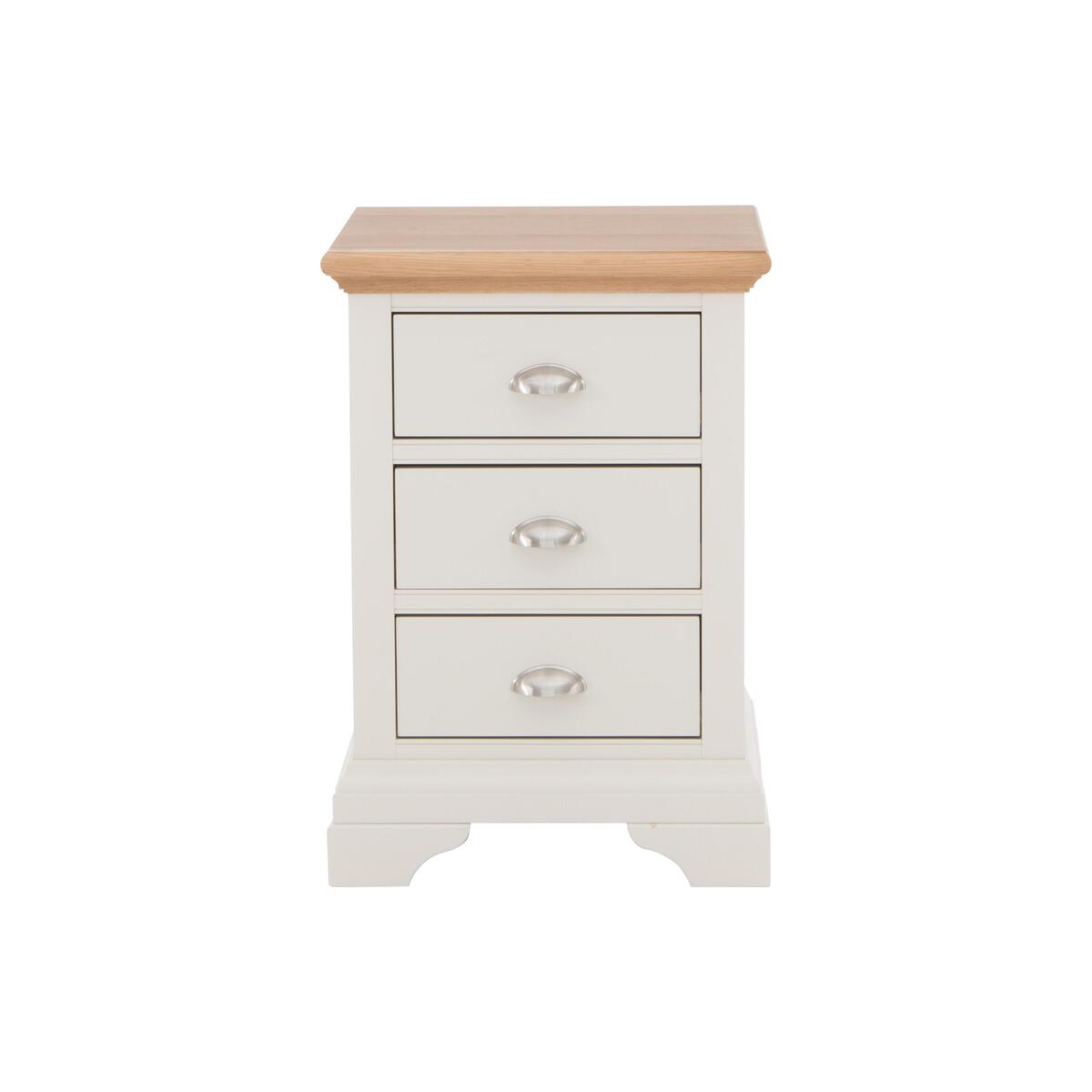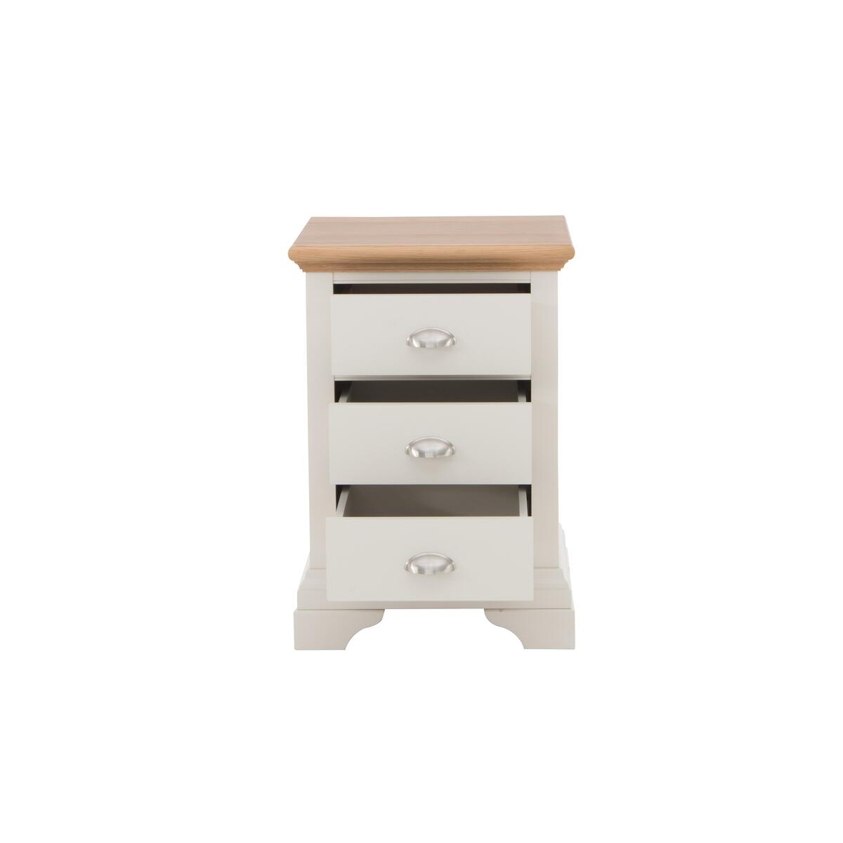 A beautiful blend of traditional and contemporary, the Emily collection of bedroom furniture is timelessly charming. A choice of painted wood, all wood and two tone finishes includes painted grey with oiled American oak solids and veneers. This elegant bedroom furniture has brushed steel cup handles, corniced tops and bracket feet or tapered legs. Practical touches include a lacquer finish and Blum soft-closing drawers. Small but perfectly formed, the Emily 3 drawer bedside chest with cornice top has lovely details and plenty of storage – exactly what you’re looking for in a nightstand. It also perfectly complements the simple and stylish Emily bed frame or even the Emily headboard. A practical choice, this roomy bedside cabinet has three soft-closing drawers, each finished with a brushed-steel cup handle. Crafted with a durable solid wood frame, it rests on sturdy bracket feet and has a wipe-clean lacquer finish, making it a hardwearing piece designed to look beautiful for years to come. With chests of drawers, wardrobes, bed frame, blanket box, the Emily 3 drawer bedside chest and more, the Emily bedroom furniture collection is all you need to create a lovely bedroom. Available in a range of oak, walnut and painted finishes. WARNING!. Furniture can tip over unexpectedly and cause injury. This item shall be fixed to a wall using the anti-tip kit provided with the furniture. Be sure to use the correct wall fixings suitable for the walls in your home.