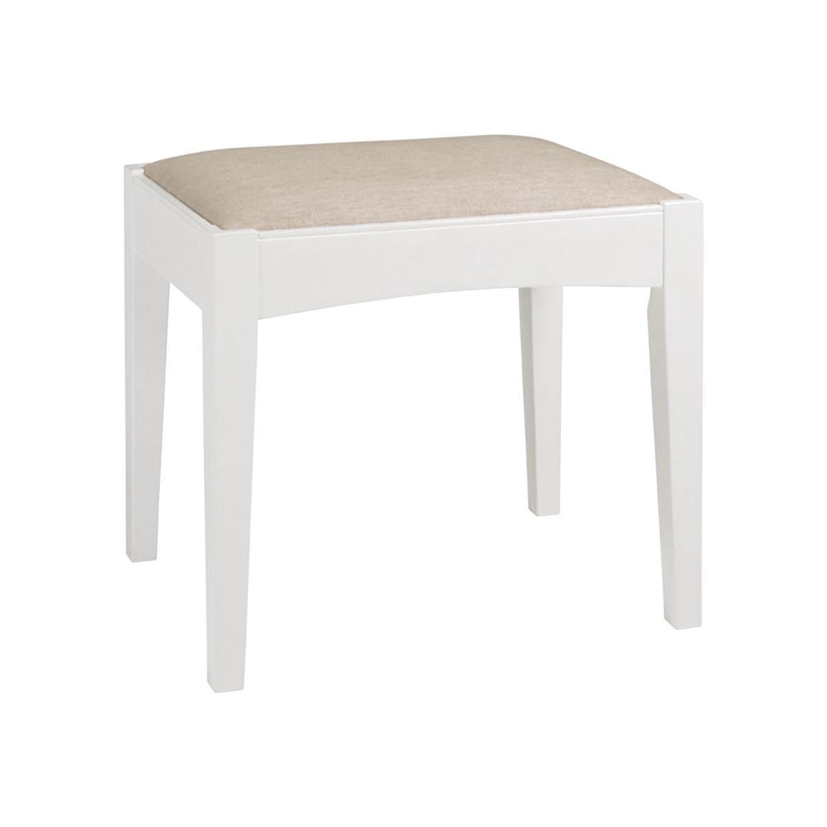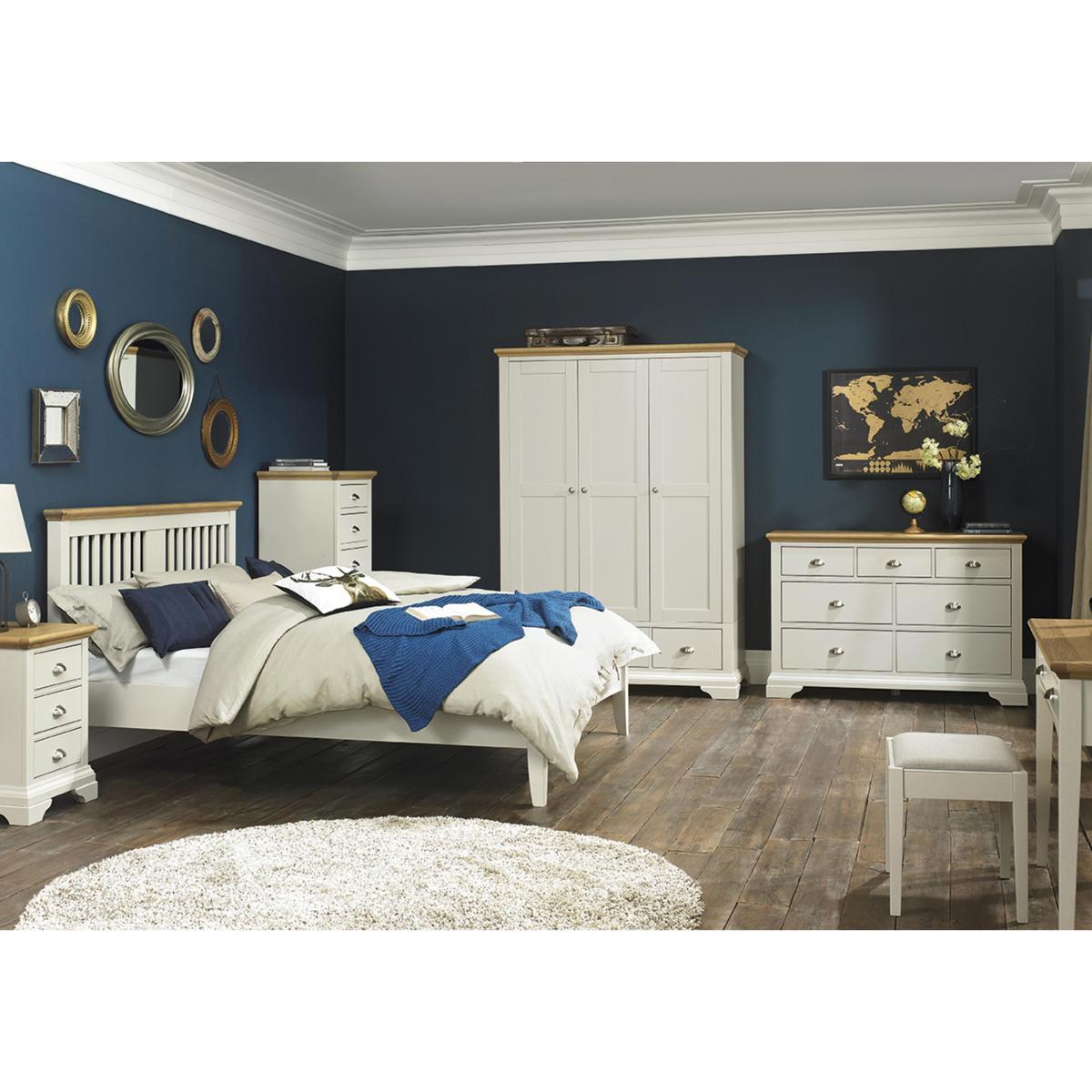 A beautiful blend of traditional and contemporary, the Emily collection of bedroom furniture is timelessly charming. A choice of painted wood, all wood and two tone finishes includes painted grey with oiled American oak solids and veneers. This elegant bedroom furniture has brushed steel cup handles, corniced tops and bracket feet or tapered legs. Practical touches include a lacquer finish and Blum soft-closing drawers. Charming grey painted bedroom stool. Timelessly rustic, painted look never goes out of style. Perfect with the Emily dressing table. Suits any wooden or painted dressing table. Solid wood frame is painted a soft grey colour. With a practical, strong and hardwearing lacquer finish. Cushioned upholstered seat, elegant tapered legs. 3 alternative frame finishes are available – oak, ivory and white painted.