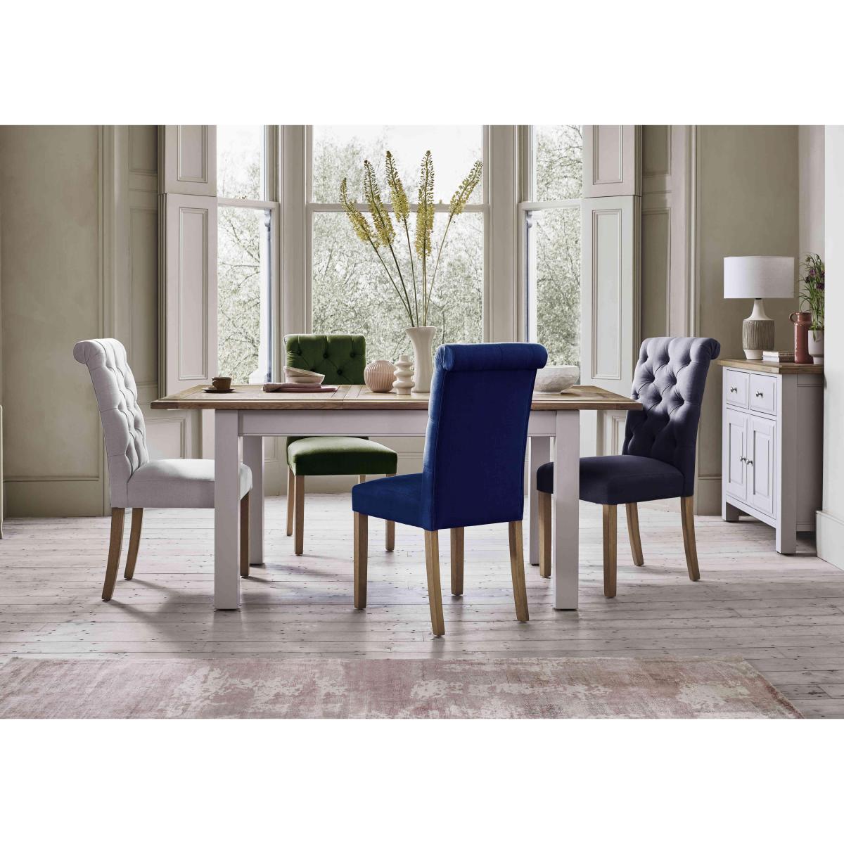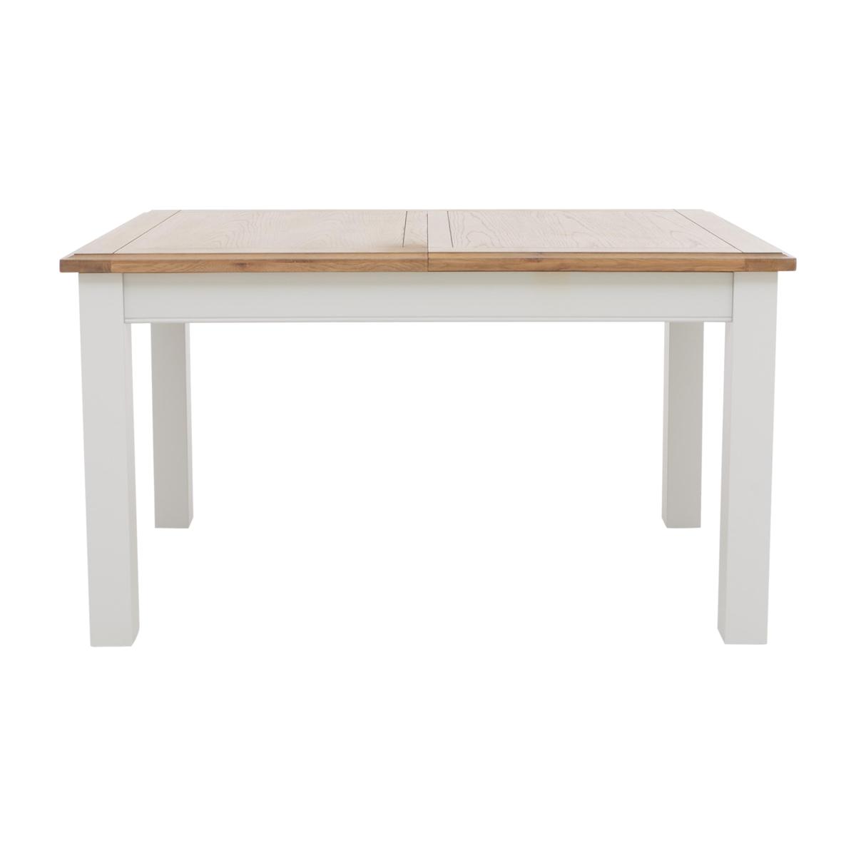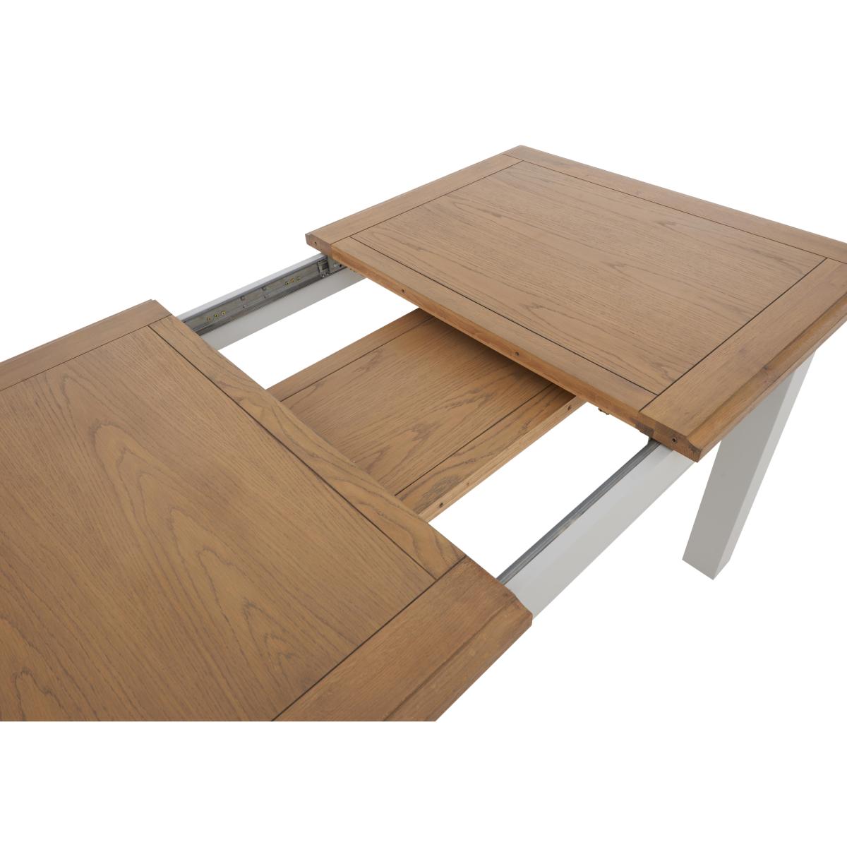 Designed for stylish everyday living, our modern country Hamilton range offers a huge choice of furniture options at really incredible-value prices. With its signature grey-washed American oak and white-painted finish, this extensive collection of mix and match extending dining tables and dining chairs, dining sets, storage furniture and occasional tables will always look at home. Pieces are beautifully crafted and offer many clever living and dining furniture solutions for compact spaces and larger rooms alike, alongside an easy-to-live-with look that will never go out of style. The Hamilton collection is exclusive to Furniture Village. Beautifully crafted and incredibly well-priced – what’s not to love about this American oak-topped extending dining table?Why you'll love it This unfussy rectangular extending dining table is the perfect family dining table. Modern country style at a great-value price. Solid American oak and American oak veneer top in a contemporary grey wash. Stylish coordinating white-painted legs. Extends to seat 8 with a simple clockwork mechanism. Exclusive to Furniture Village. This rectangular extending dining table is part of our Hamilton range. What you need to know Seats 6 closed and 8 when extended. American oak and American oak veneer surfaces may display knots, markings and colour variation. Avoid placing in direct sunlight or close to heat. We recommend using coasters and placemats at all times.