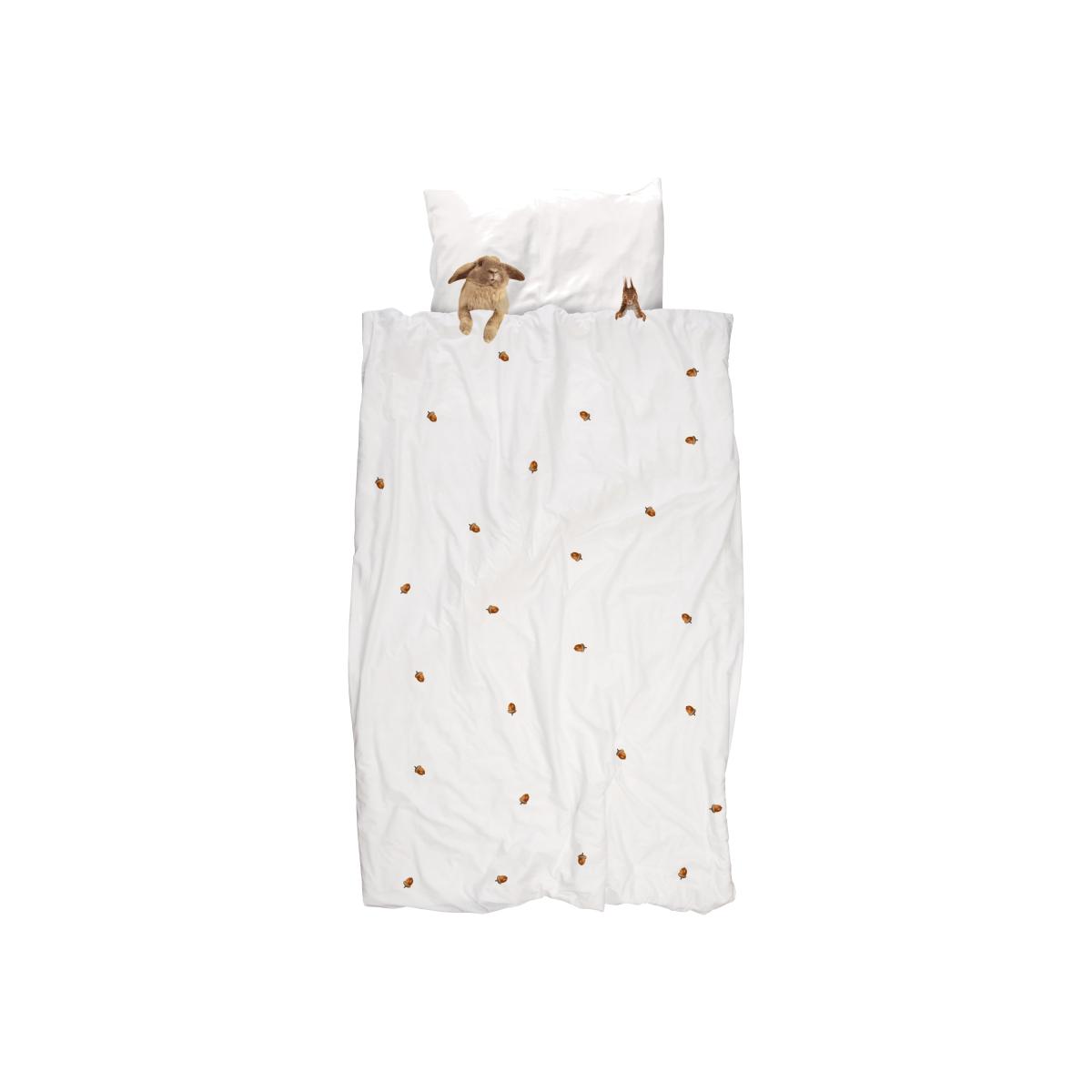 Furry friends Bedlinen set for 1 person - 1 person / W 140 x L 200 cm by Snurk White/Brown