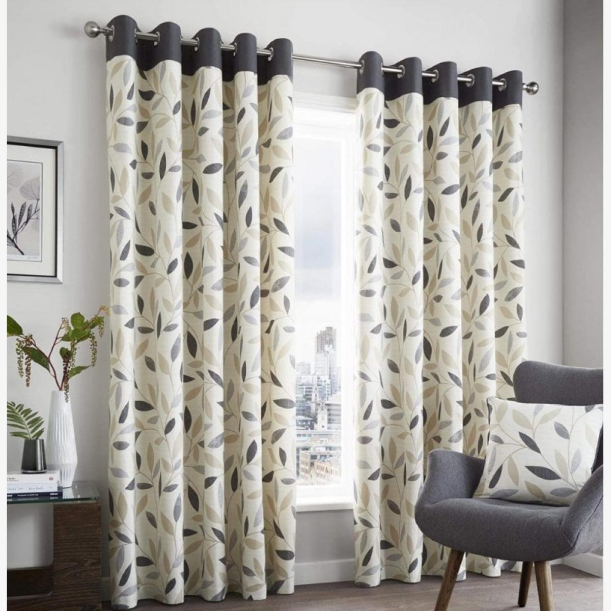Material: Curtain: 100% Cotton Lining: 50% Cotton, 50% Polyester Floral Pattern Eyelet Heading Dimensions shown as width and then drop To avoid shrinkage, clean whilst your curtains are hung
