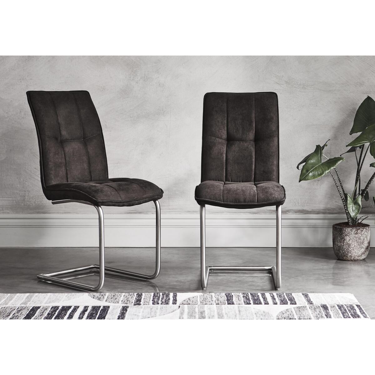 The aptly named Fusion collection of living room and dining room furniture melds two on-trend finishes – concrete and rustic wood – in a fabulous twist on modern industrial style. Pieces showcase eye-catching concrete tops, bold and chunky, juxtaposed with sturdy brushed acacia wood frames. This contemporary range includes dining tables, a dining chair and dining bench, occasional tables and storage pieces, and a wide choice of dining sets with versatile seating options. Cool, contemporary and incredible value. With its cool brushed steel cantilever base and well-padded seat, this is the kind of dining chair that guests love. It’s the perfect partner for the Fusion dining table, available in two sizes. Why you’ll love it. Great-value dining chair with cool cantilever base. Contemporary industrial style. Brushed steel tubular base. Relaxed cushioning is exceptionally comfortable. Piped edges, and buttoned back and seat. Soft fabric upholstery in a choice of colours. Crafted with care and exclusive to Furniture Village. What you need to know. The Fusion range includes dining tables, dining sets and storage furniture. Mix and match with the Fusion dining bench for a versatile seating arrangement.