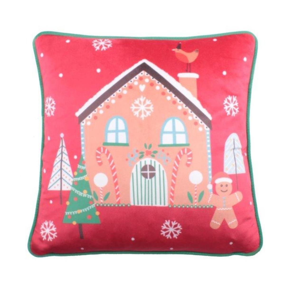 A happy dancing Gingerbread Man welcomes you into his house on this Christmas cushion from Fusion. Printed on to an incredibly soft touch, plush, fleece fabric. This piped cushion will look great in any room. Festive Christmas-themed fun bedding from Fusion to get you in the mood for the Xmas holiday season. 43 x 43cm square cushion with filling pad (zip opening to allow removal of filling pad. Fabric: 100% polyester & 100% polyester filling pad. All screens vary in colour reproduction and whilst every effort has been made to display the colour as accurately as possible it is for guidance only.