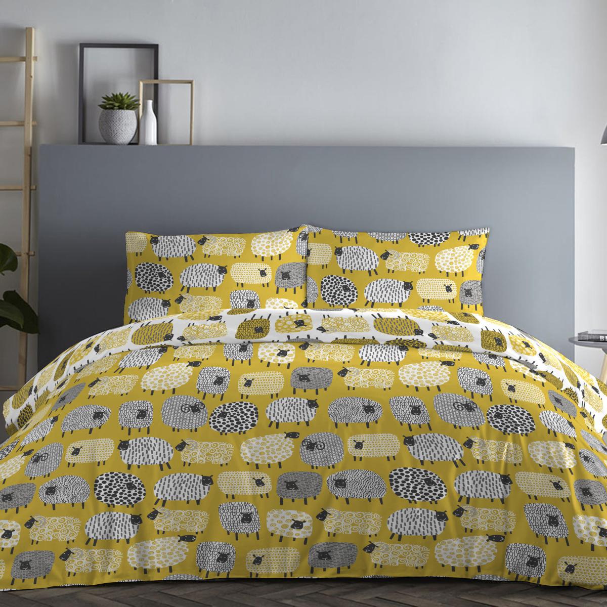 Fusion Dotty Sheep Yellow Duvet Cover and Pillowcase Set Yellow, Black and White