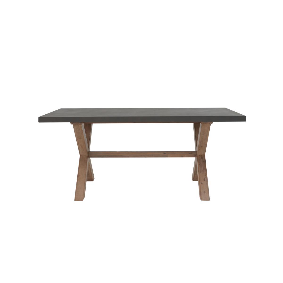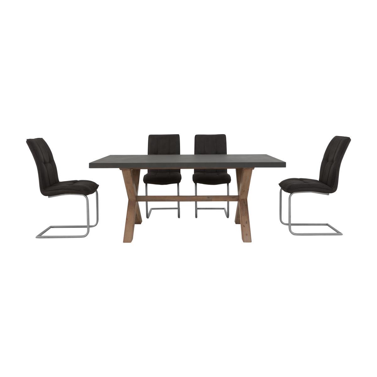 The aptly named Fusion collection of living room and dining room furniture melds two on-trend finishes – concrete and rustic wood – in a fabulous twist on modern industrial style. Pieces showcase eye-catching concrete tops, bold and chunky, juxtaposed with sturdy brushed acacia wood frames. This contemporary range includes dining tables, a dining chair and dining bench, occasional tables and storage pieces, and a wide choice of dining sets with versatile seating options. Cool, contemporary and incredible value. Love contemporary industrial style? Here’s the dining set for you. A fabulous fusion of textures and materials – including a very cool concrete table top – delivers a bold on-trend look. Why you’ll love it. Great-value dining set with a very unique look. A contemporary twist on industrial style. Table has a chunky square-edged concrete top. Sturdy X-shaped trestle base in brushed acacia wood. Wood base has a protective matt lacquer finish so it’s easy to look after. Dining chairs have brushed steel cantilever bases and relaxed cushioning. Soft fabric upholstery with piped edges and buttoning. Chairs are exclusive to Furniture Village. What you need to know. Table base is solid acacia wood. Concrete top is fibre-reinforced for durability. Large dining table seats 8. Wood has natural markings, knots and colour variations. Concrete top may show some small imperfections. This dining table is heavy – please take care when moving it. Use coasters and placemats to protect the surface. Clean with dish soap and warm water, and dry immediately using a lint-free cloth. The Fusion range includes a huge choice of dining sets, sideboards and tables.