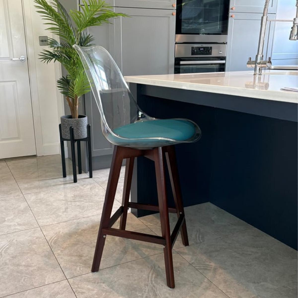I really like this clear plastic bar stool because it offers a modern, minimalist look that can easily slot into a variety of interiors. Its transparent design makes it ideal for smaller spaces, as it creates a sense of openness and prevents the area from feeling cluttered. It works particularly well in contemporary, Scandinavian, or industrial-style kitchens and breakfast bars. To style it effectively, consider pairing it with colourful cushions or seat pads to add comfort and a pop of colour, or keep the styling sleek and monochrome for a more streamlined aesthetic. Practical and effortlessly versatile, this stool is a clever choice for adding functionality without sacrificing style.