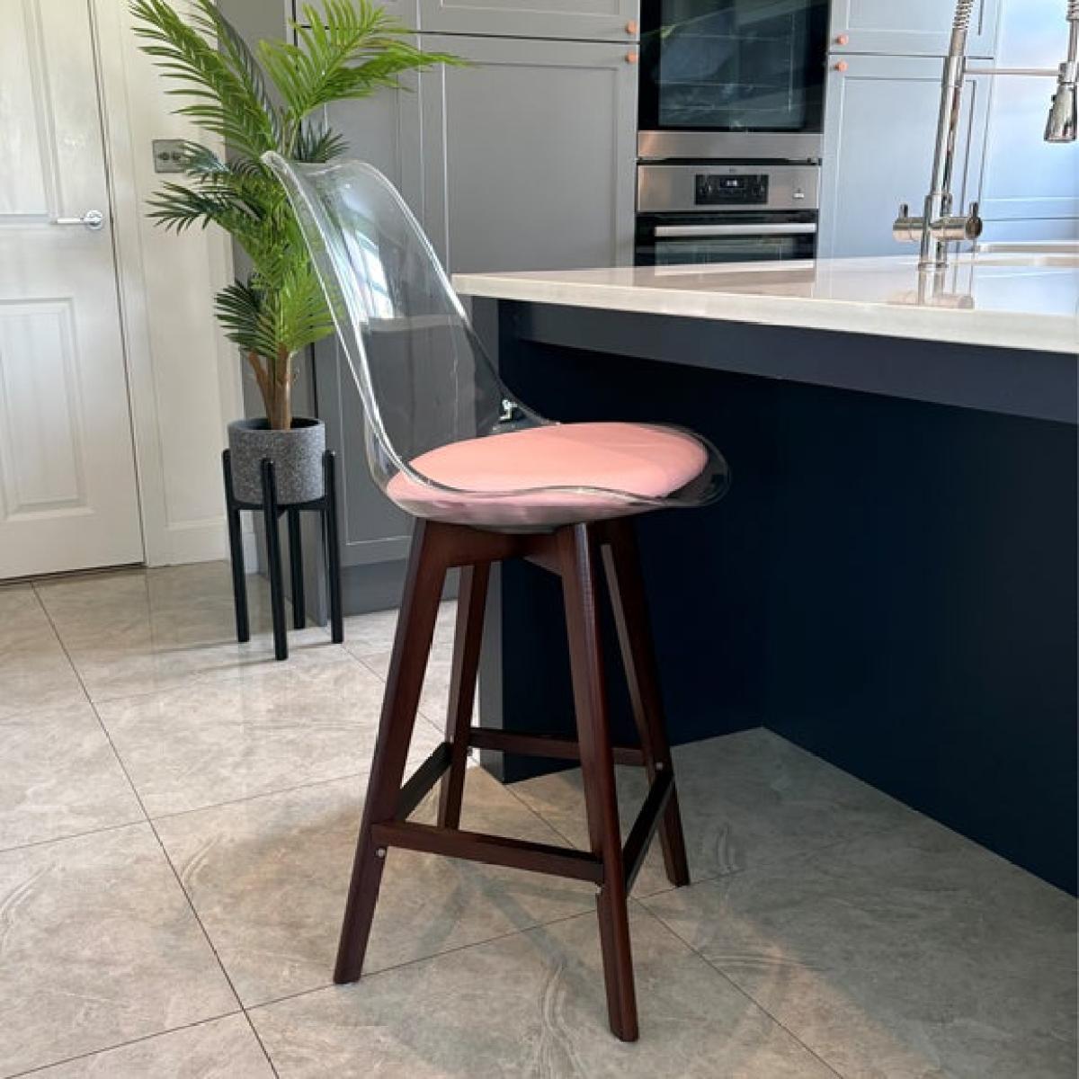 I love this clear plastic bar stool for its modern, sleek look that effortlessly adds a contemporary touch to any kitchen or breakfast bar. Its transparent design helps it blend seamlessly into various colour schemes, making spaces appear more open and airy. It works particularly well in minimalist, Scandi, or even eclectic interiors where clean lines and simplicity are key. To style it effectively, consider pairing with a cosy cushioned seat or colourful accessories on your bar to add warmth and personality. It's also practical-easy to clean and lightweight-making it ideal for frequent use or casual dining spaces.