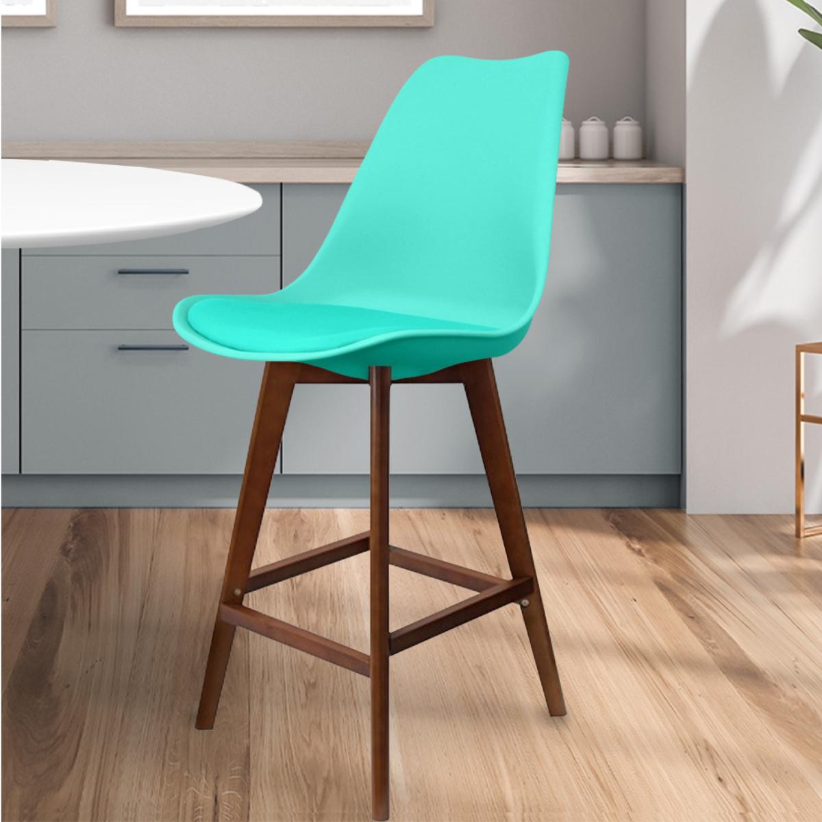 I’m a fan of the aqua Soho stool for its clean lines and pop of colour - the plastic shell feels fresh, while the wood-tone legs warm it up. It works brilliantly in modern kitchens with pale oak or in Scandi-inspired dining nooks, and can even lift a neutral, monochrome scheme without overwhelming the space. For styling, line two or three along your island and introduce open shelving in a matching wood finish to tie everything together. The wipe-clean surface makes it ideal for family kitchens or a compact home-office bar table, and you can balance its vibrancy by pairing it with soft textiles like a grey wool rug or neutral linen cushions.