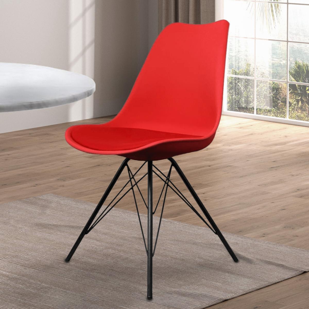 I’m a fan of the Soho chair in red for its punchy colour and sleek profile - the polypropylene shell on slim metal legs brings a modern, mid-century edge without feeling bulky. It’s at home in minimalist or Scandi-inspired dining spaces, but equally lends a pop of personality to a neutral, open-plan kitchen. For styling, pair it with a light timber table to soften the look, or go for a monochrome setting if you want contrast. Add a neutral-toned or geometric cushion to break up the brightness, and use washable fabrics or removable pads - the plastic shell means any spills wipe clean in seconds, making it as practical as it is eye-catching.