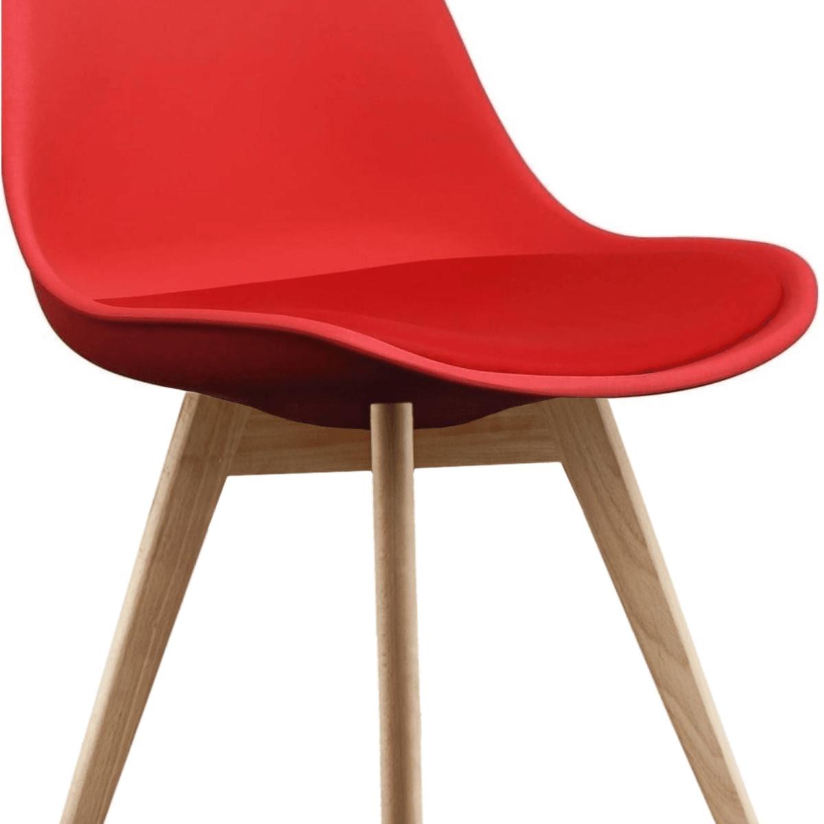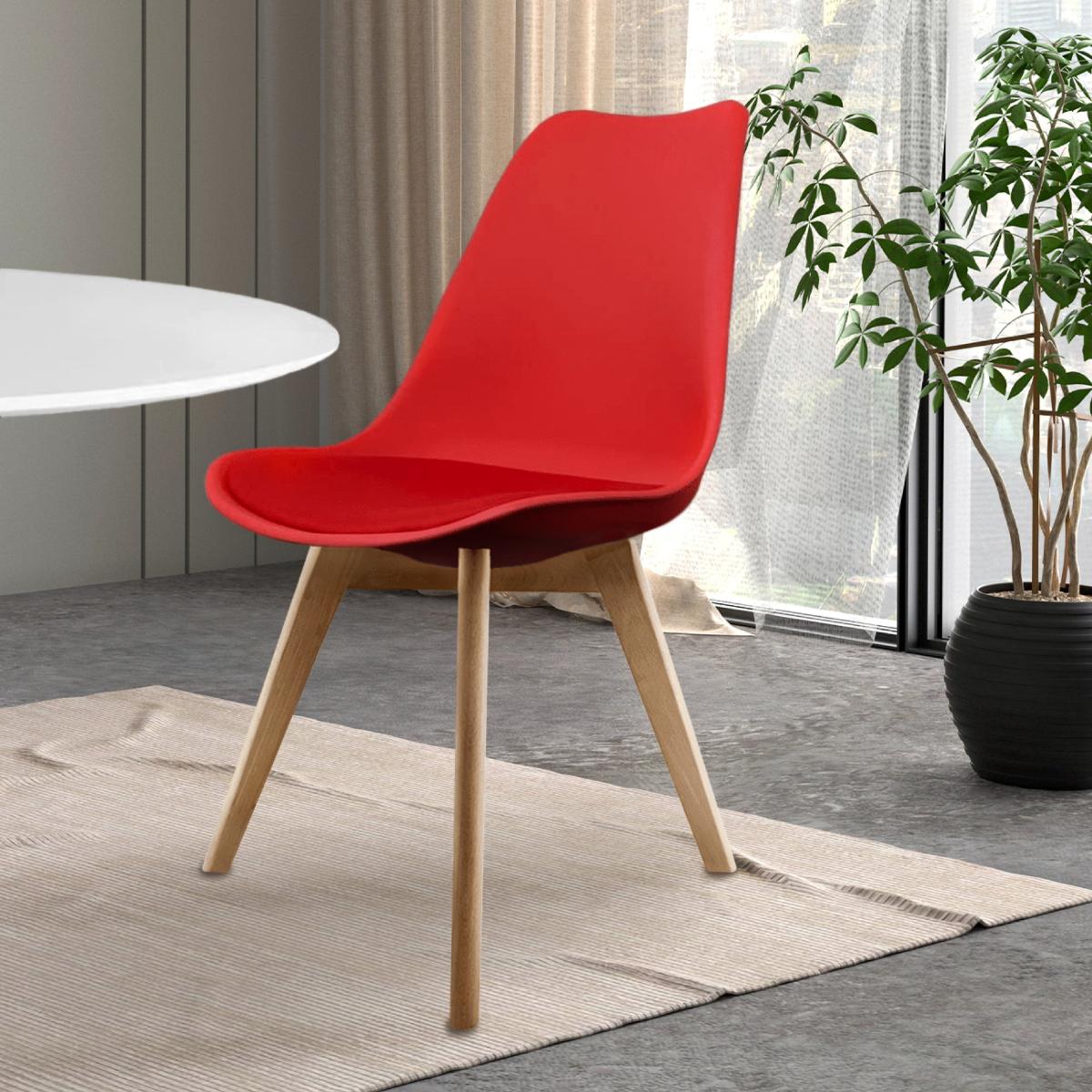 I’m a fan of the red Soho chair for its clean, curved shell and warm oak-effect legs - it injects a bold pop of colour without feeling over the top. It sits equally well in a Scandi-inspired kitchen, a pared-back contemporary dining area or even an industrial loft where that bright tone contrasts nicely against exposed brick or metal. For styling, balance the vivid seat with neutral linens or a soft grey rug underfoot, then echo the red in small accents like cushions or artwork. Around the table you might alternate it with white or charcoal chairs for a playful, layered look, and add a slim pendant light in black or brass to draw the eye and anchor the scheme.