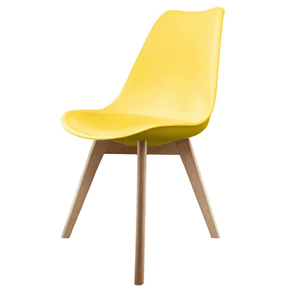 I’m a fan of the yellow Soho chair for its sleek, pared-back shape and cheerful pop of colour. It sits neatly in Scandi-inspired dining rooms beside a light oak table, or brings energy to a neutral-toned kitchen. For a more eclectic look, mix it with chairs in soft greys or muted pastels and layer a simple seat pad for comfort. Its wipe-clean plastic shell and solid wooden legs make it ideal for busy family kitchens or a compact home office, where you might move it around to suit changing needs.