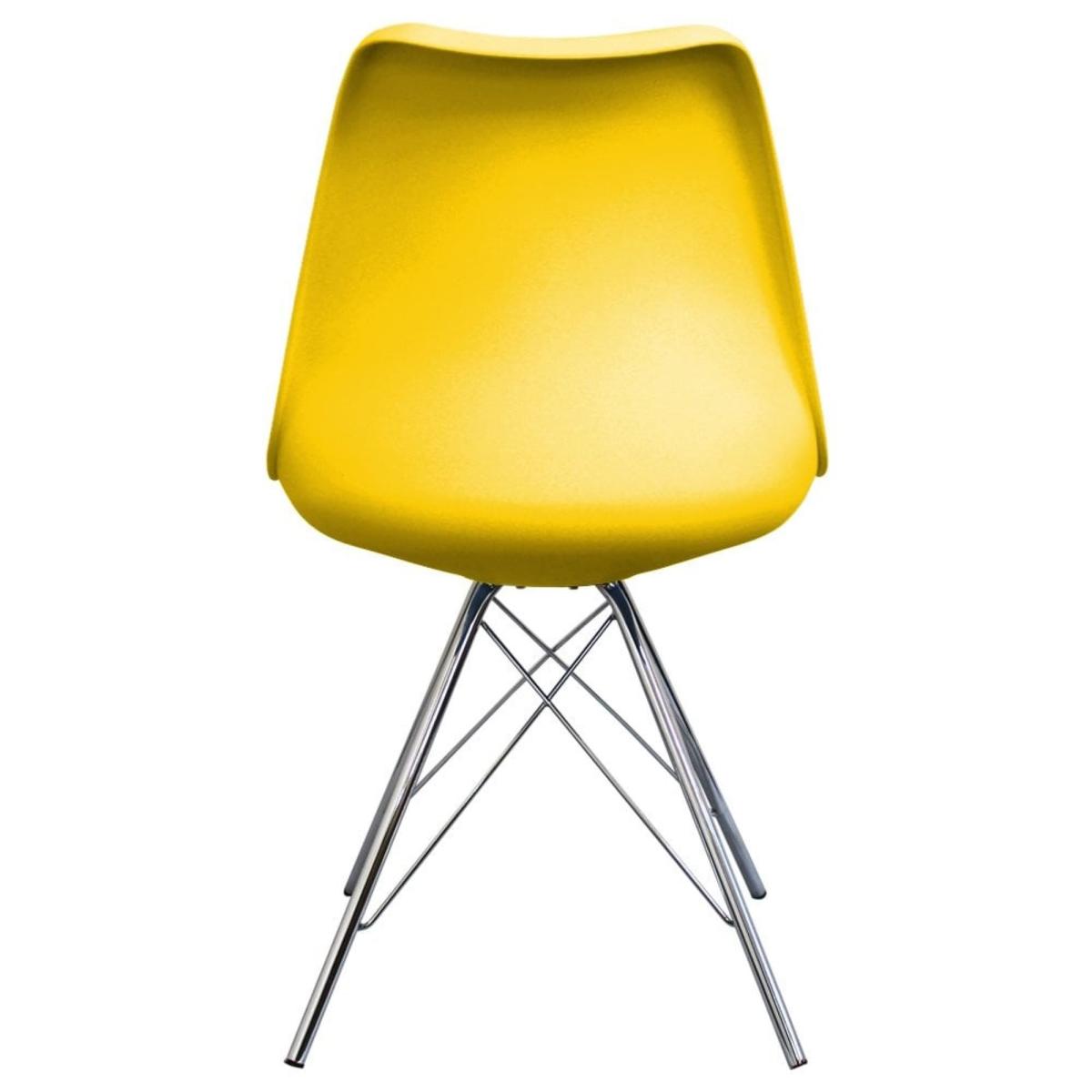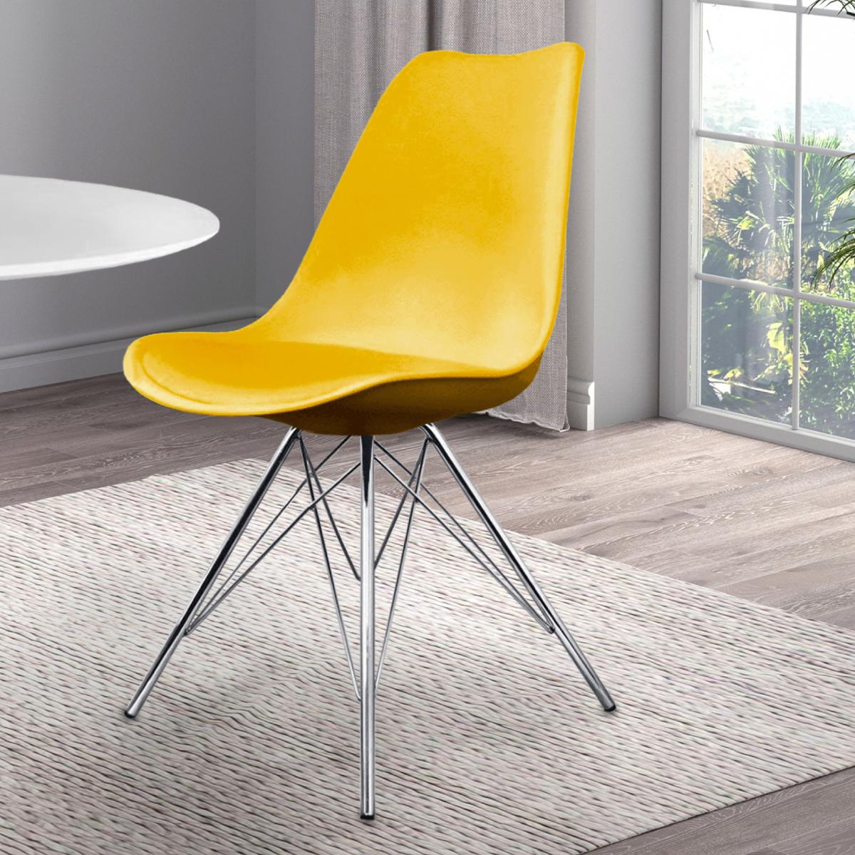 I’d recommend the yellow Soho chair as a quick way to inject colour into a pared-back dining area or home office. Its moulded plastic seat and slim chrome legs sit comfortably in Scandi-inspired, mid-century or industrial schemes, and the smooth finish is easy to wipe clean - ideal for busy households. For styling, pair it with a light oak or metal-framed table and add a simple textured cushion to soften the look. You can mix and match two or three chairs in different hues for a playful feel, or keep everything neutral around the table so the yellow really pops.