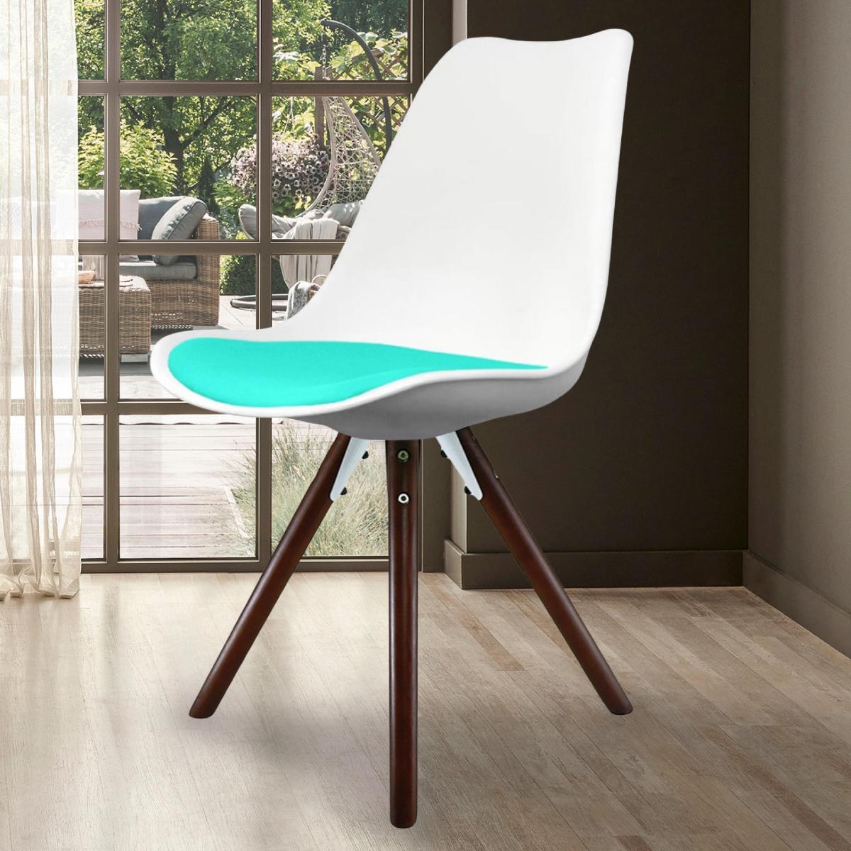 I particularly like this aqua-accent Soho chair for its blend of modern simplicity and a pop of colour. The clean white shell and easy-clean plastic seat make it ideal for family dining or a home office, while the angled wooden legs add warmth and a subtle nod to Scandinavian design. Styling tip: pair it with a pale oak or whitewashed table and a jute rug to reinforce that Scandi-minimal feel. It also works well in a contemporary kitchen alongside industrial pendant lighting. For extra comfort, layer on a textured cushion in neutral tones so the aqua detail remains the star.