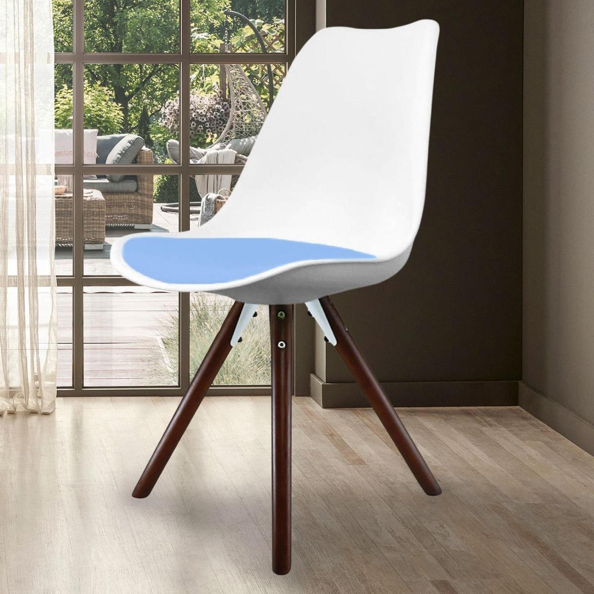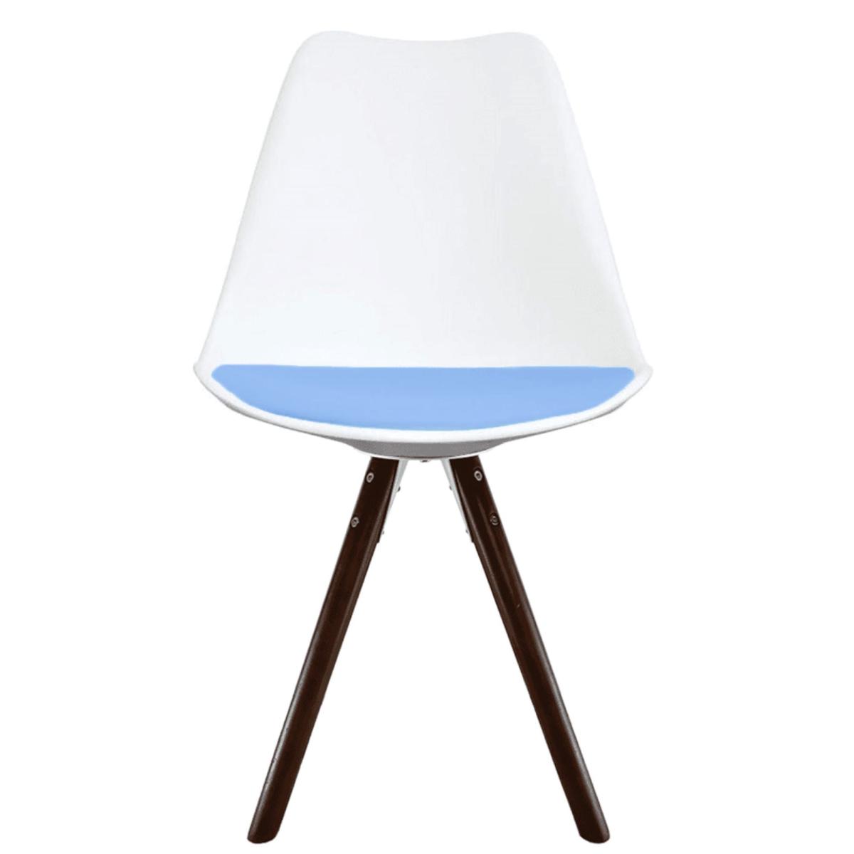 Fusion Living Soho White Plastic Dining Chair with Pyramid Legs Light Blue
