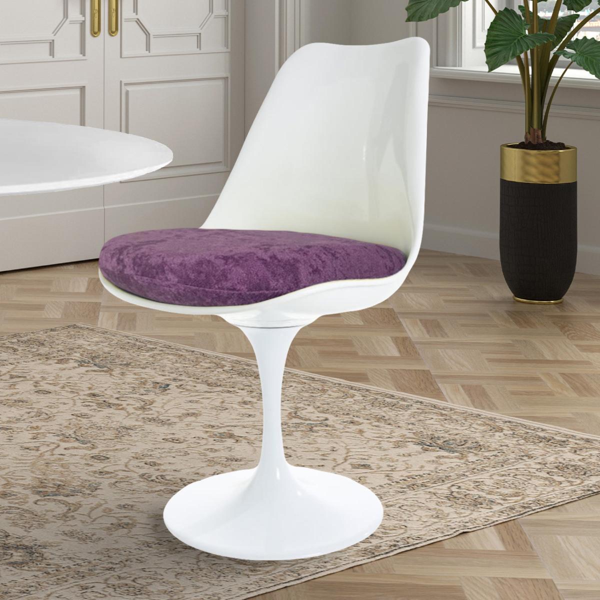 Fusion Living White Tulip Dining Chair with Luxurious Cushion Purple
