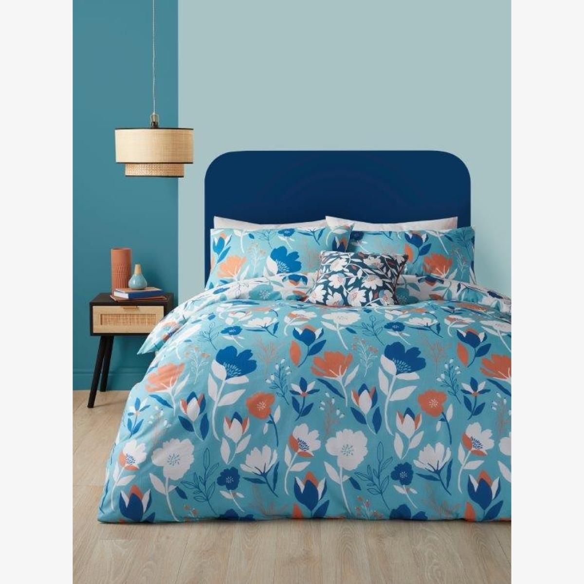 This stunning, bold floral print is sure to enhance any bedroom. The easy care polycotton bedding set is fully reversible for two great looks in one with the reverse featuring the same print on a white background and comes complete with matching housewife pillowcase(s). Features 52% Polyester, 48% Cotton Reversible Single duvet includes a single pillowcase Double, king and superking duvet includes a pair of pillowcases Care Instructions Wash at 40°C before use Do not dry clean Do not bleach Low heat tumble dry Cool iron Please note All screens vary in colour reproduction and whilst every effort has been made to display the colour as accurately as possible it is for guidance only.