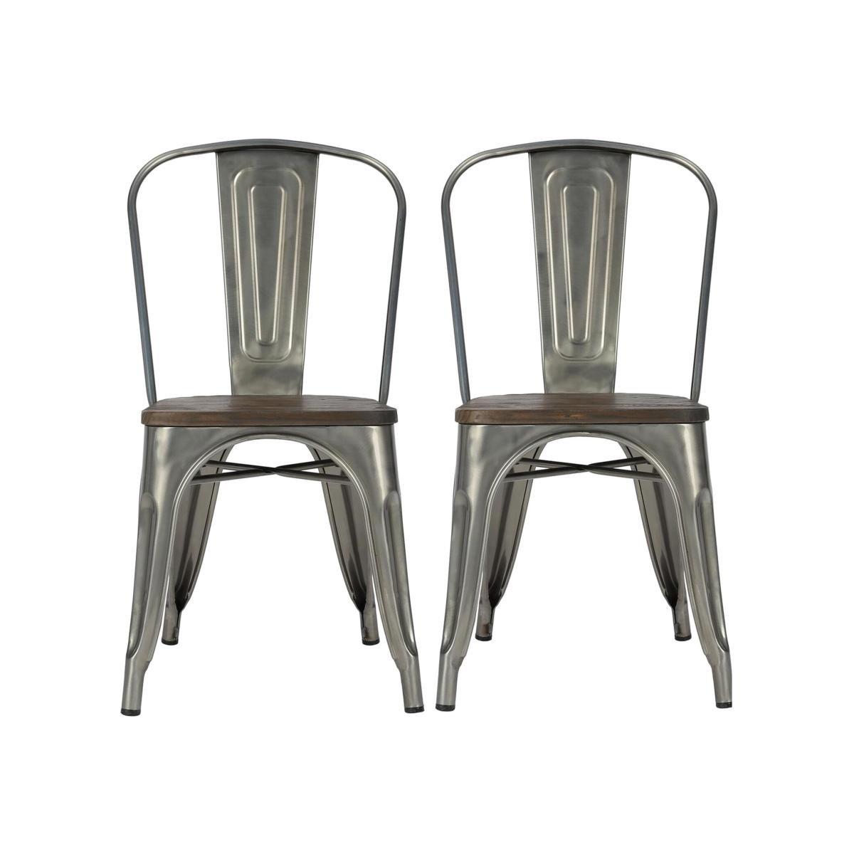 Enchant your guests with the Fusion Metal Dining chair with wood seating. Hints of its antique sleek style peek out from the distressed wood and antique metal finish. The steel frame and wood seat are extra sturdy for years of comfort for everyone.