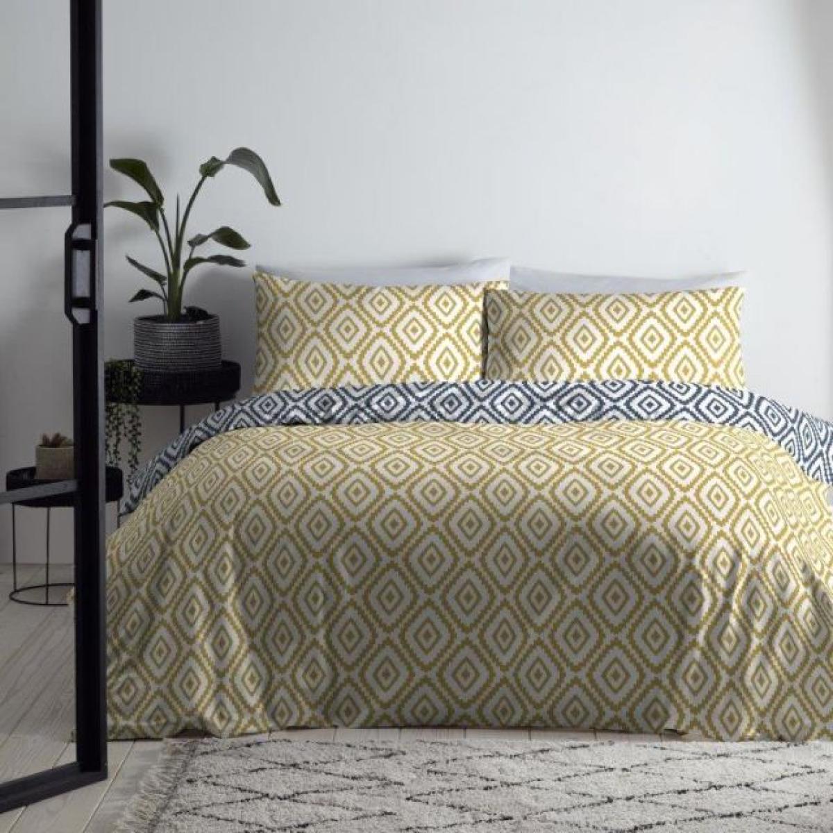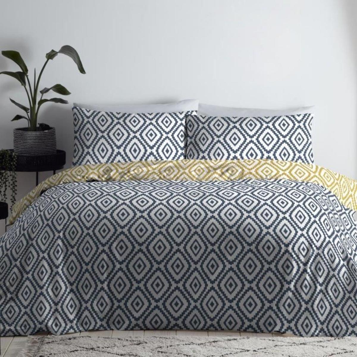 This striking diamond Ikat design transforms traditionally, inspired patterns into stylish contemporary bedding. The fully reversible duvet set allows for quick colour changes while the sense of rest and relaxation remains constant. 52% polyester, 48% cotton Machine washable All screens vary in colour reproduction and whilst every effort has been made to display the colour as accurately as possible it is for guidance only.
