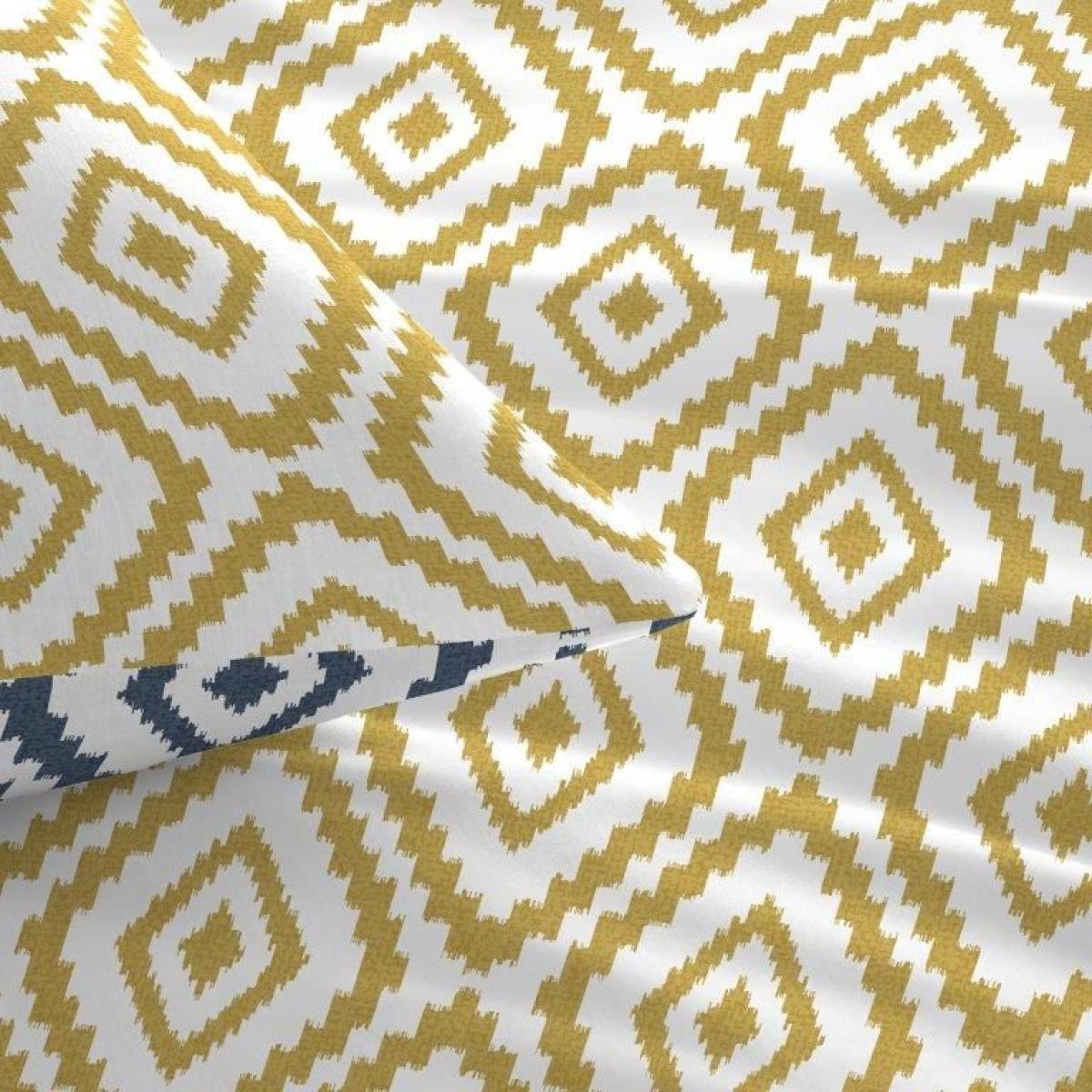 This duvet set is a great choice for adding a pop of colour and pattern to a variety of interiors. I love how the ochre and navy tones work well in both modern and rustic settings, providing a warm yet sophisticated feel. It’s particularly effective in spaces with neutral or minimalist palettes, where it can serve as a focal point or statement piece. For styling tips, consider pairing it with solid-coloured cushions or throws in complementary shades to keep the look balanced. It also pairs nicely with natural textures like wood or wicker to enhance a cosy, lived-in ambiance. Overall, it’s versatile enough to elevate both contemporary and traditional bedrooms.