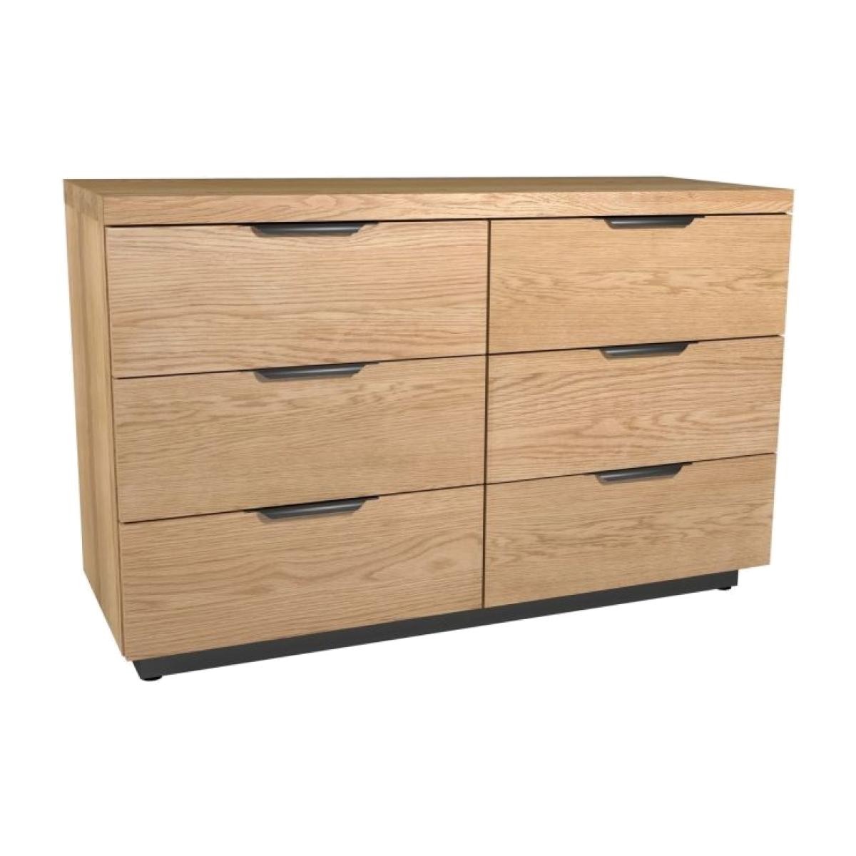 The Fusion Oak Bedroom Collection has everything you need to create an Industrial look in your home by blending simplicity and practicality this range is perfect for a modern or retro theme. This beautiful Industrial Oak 3+3 Drawer Chest is crafted from oak with metal handles. All cabinets come fully built but the legs need to be assembled Rustic oiled oak wood finish. Burnished metal leg and handle. W 120.5 x H 76 x D 45.